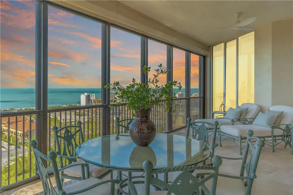 Trieste is a concierge building located in the private gated enclave of Bay Colony within Pelican Bay. Trieste residents enjoy access to a wealth of amenities, including a tropical, resort-style lagoon pool and spa, an air-conditioned poolside social room with fireplace, television, and media center, plus a social room with catering kitchen and coffee lounge, a 17 seat private theatre and a well-equipped gym located on the first floor. Indulge in the opulence of Trieste, where the lobby, first floor, and elevators were remodeled in 2022, enhancing the building’s elegance. The front desk concierge is present 24 hours a day, 365 days a year to assist. The main level of Trieste is 21 feet above sea level, enhancing the feeling of security to all owners.