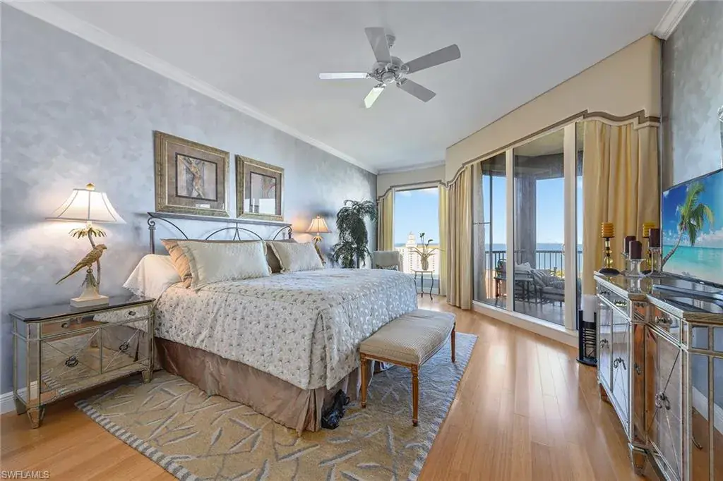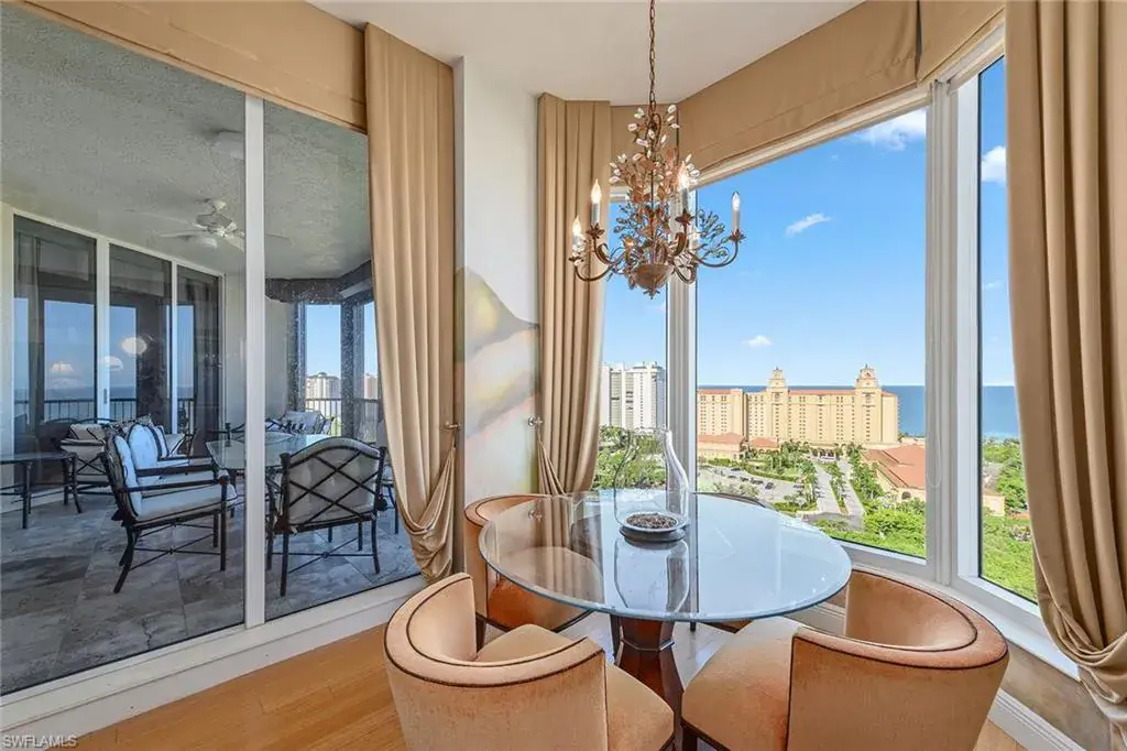 Gorgeous high-floor three-bedroom plus den, 3.5-bath gulf view designer renovation with custom finishes and upgrades throughout. Your private foyer welcomes you into an expansive living and entertaining space highlighted by designer light fixtures, custom ceiling trim, and the finest decor choices. Featuring soaring 10-foot ceilings and oversize floor-to-ceiling sliding glass doors allowing in maximum light and views. Entertaining spaces abound with an open chef’s kitchen with granite countertop peninsula, casual seating and breakfast area, formal dining, a well-thought-out and designed custom bar, and an expansive outdoor screened-in lanai. Parking includes two under-building parking spaces. Trieste residents enjoy a resort-style pool with a private entertainment cabana, an updated social room, a fitness center, a lobby, a theater and on-site guest suites. Bay Colony residents enjoy the private Beach Club with a restaurant, pool, bar and fully attended beach services as well as tennis at the Bay Colony Tennis Club.