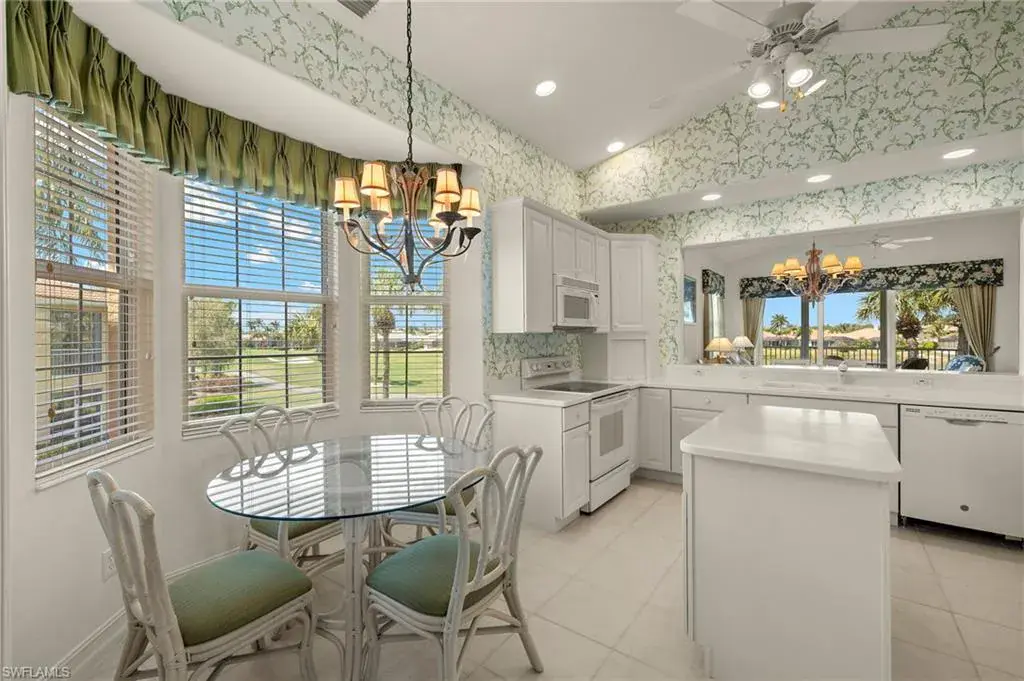 The bright, white kitchen with a cozy breakfast nook invites relaxed mornings, while the serene reading area offers a peaceful escape. Enjoy the breathtaking views from the expansive lanai—ideal for outdoor dining or simply soaking in the sights of the golf course and lake.