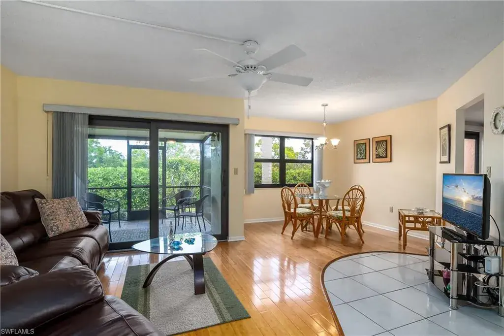 This 1st floor very desirable condo is offered as Turn Key with serene views from a private screened lanai. It is ready to be moved into without doing any updating! This very comfortable haven has two bedrooms, two recently updated bathrooms, laundry room and storage room. Tiled floors in kitchen, hallways, bathrooms, living room and bedrooms. Wood floor in the separate dining area. In-unit washer and dryer are included. Tropic Schooner offers residents (2) community pools, tennis courts, pickle ball courts and bocce courts, community room with grills, tables, chairs and umbrellas with waterfront views. It’s ideally located near Marco Island, Isle of Capri and a short drive to downtown Naples shopping and entertainment.