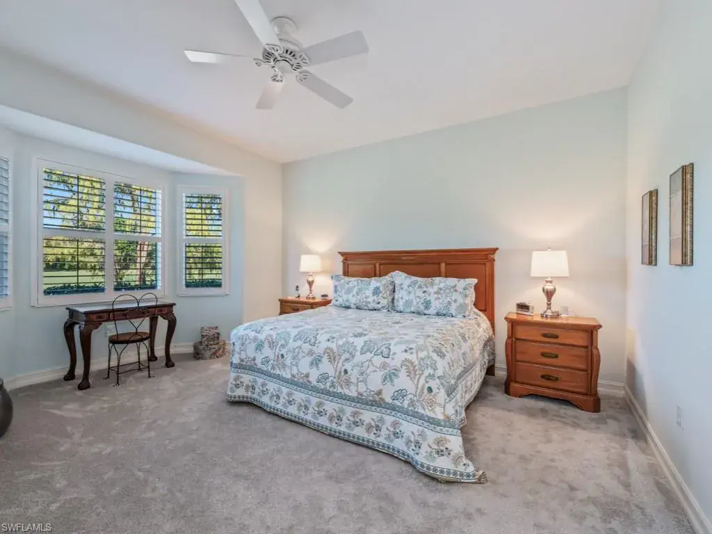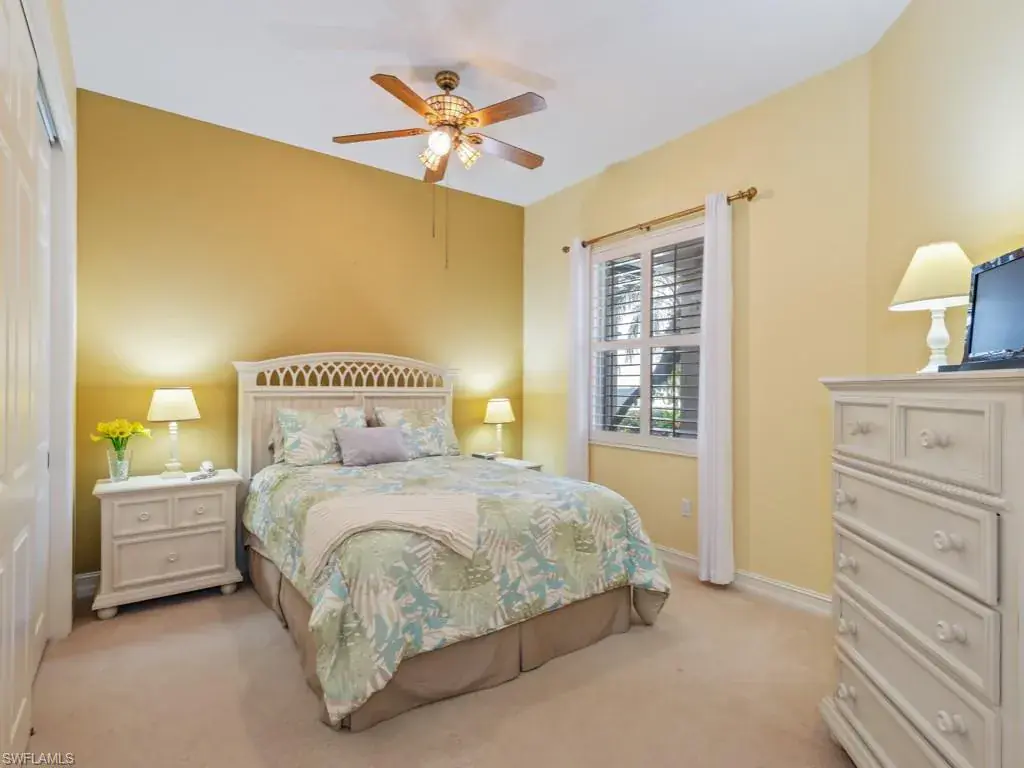 Meticulously cared for FIRST FLOOR Turnberry Woods condo. This is what you’ve been waiting for! Tastefully appointed and available furnished with classic lightly used furnishings, and ready to enjoy this Winter Season. The property boasts dreamy western views to enjoy the SWFL sunsets. Lush fairway views. Notable features include a 1-year-old roof, hurricane rated windows and doors, power hurricane shutters, plantation shutters, quartz counters, newer appliances, 5 1/4″ baseboards throughout, plantation shutters on most windows, and an epoxy garage floor. There is an additional flex-room that was a builder option back when the community was constructed. It’s currently being utilized and furnished as a home office. It’s one of the few to feature this on the street! This lovely home is bound to impress. Turnberry Woods is an elegant boutique neighborhood within The Strand with condos on only one side of the street. Natural preserves are found opposite the buildings. There is a dedicated pool with restrooms just a few buildings down. Enjoy a friendly, active country club lifestyle, complete with 3 beautifully maintained 9-hole golf courses, tennis, pickleball, ALL NEW fitness center with state-of-the-art equipment, and the recently renewed impressive pool with lap lanes. There are newer bocce courts, as well as a recently added croquet center, Island Bar and Tavern 59 for residents to enjoy. Fine dining is on the upper level of the recently renovated Clubhouse. The Strand is a golf cart friendly community and has recently added more dedicated golf cart parking spaces near to the 4 brand-new pickleball courts. All of this and so much more, located within a short drive of many dining and shopping conveniences, and the sugar-sand beaches on the Gulf.