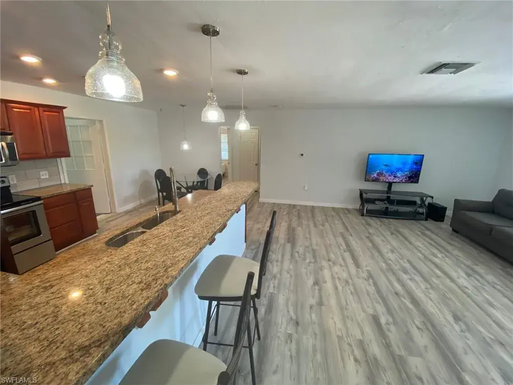 Never miss another Naples sunset! Live the Naples Florida lifestyle in the desirable Bayshore Area! The house is situated on almost 1/2 an acre on a large deep corner lot. It features a modern open floor plan with solid concrete block construction, and a newer Florida style metal roof. This home is located in a *No HOA* neighborhood! This spacious home has 2 full kitchens, 4 bedrooms, a den/office, and 4 full bathrooms. The largest guest bedroom can comfortably fit two queen beds or a king bed. The huge backyard has southwestern exposure perfect for sunsets with a lake view and surrounded by tropical landscape. Store a boat, trailer, and recreational vehicle with room to spare in the large, fenced back yard. There is plenty of space to add a backyard pool, and gardening. Just minutes to downtown Naples and Marco Island’s beaches, parks, boating, restaurants and shopping. Enjoy the Naples Botanical Gardens and the East Naples Community Park, featuring championship pickle ball courts, playground, and a paved scenic .55-mile paved lake trail. All this is easily accessible via the boardwalk within the neighborhood. Also, within walking distance to Avalon Elementary school. Only 1 mile to the Naples Bayview Waterfront Park boat launch and marina.