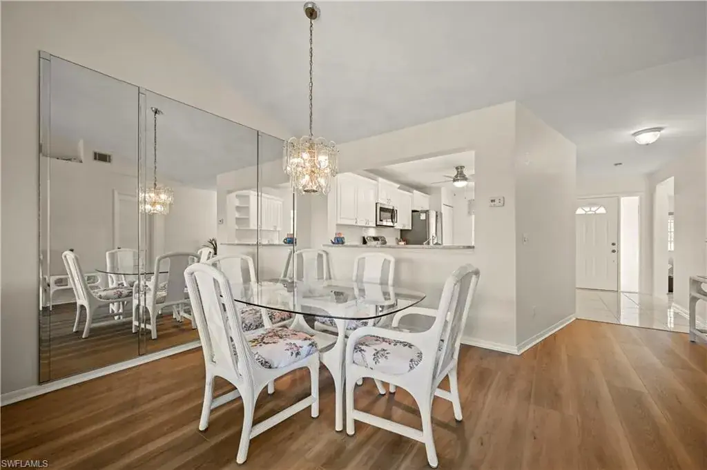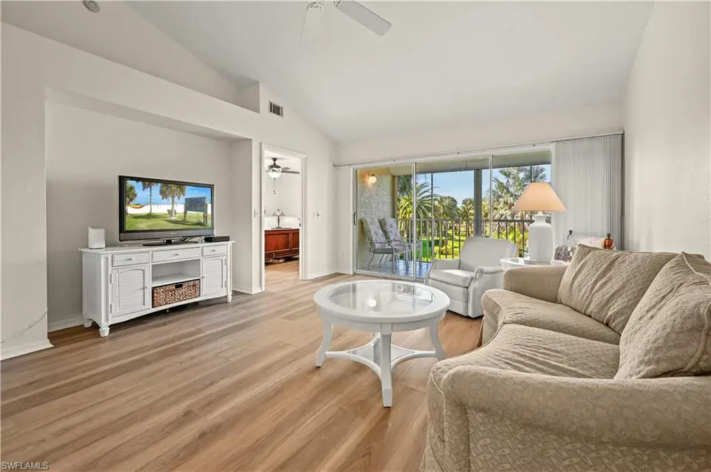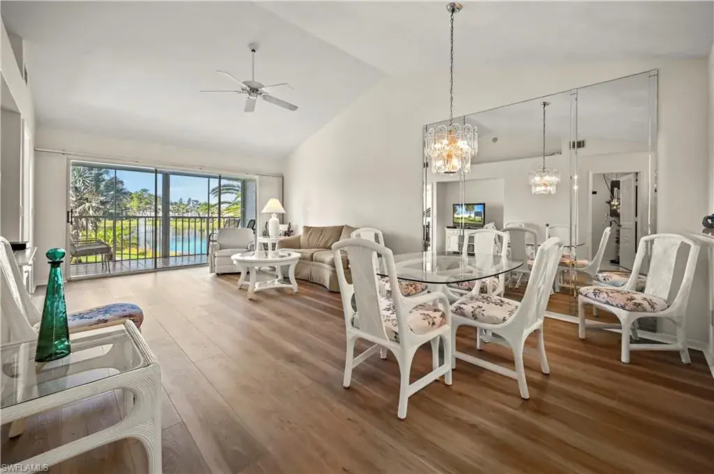 This exceptional 2nd-floor penthouse offers a true 3-bedroom layout with breathtaking long lake views in a serene, park-like setting. As an end unit, it is bathed in natural light that fills its spacious rooms, including a generously sized, updated kitchen. Meticulously maintained, this condo is clean, bright, and move-in ready, featuring fresh paint, new luxury vinyl flooring, and a brand-new washer and dryer. The spectacular view over the sparkling lake and lush landscaping is one of the finest in all of Sapphire Lakes. Additional highlights include a one-car garage and proximity to the pool, pickleball courts, and more. Sapphire Lakes is a gated, beautifully landscaped community offering a range of amenities, including tennis, pickleball, four pools, and a bocce court with league play.
