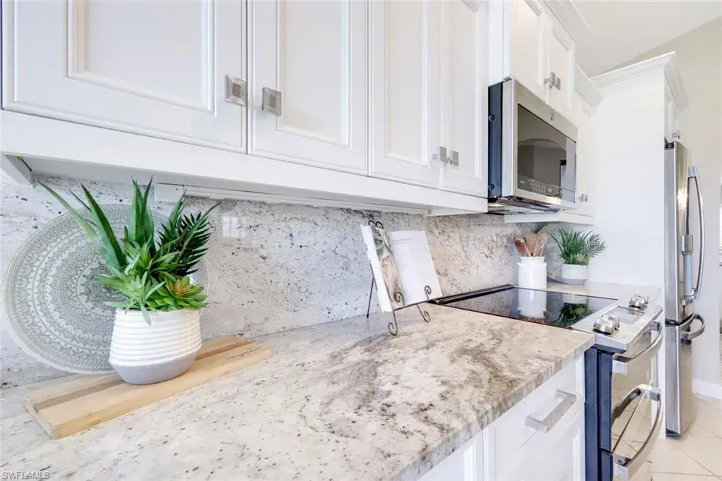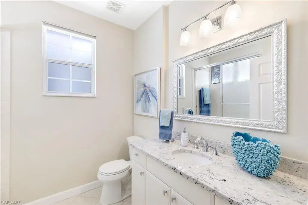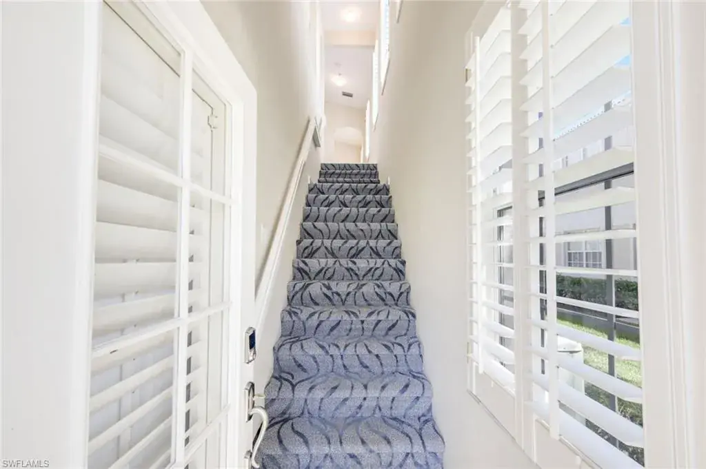 Welcome home to Bridgewater Bay — one of North Naples’ most welcoming and beautifully maintained gated communities! This spacious and BRIGHT 2nd-floor lake-view coach home lives large at 1,847 square feet. This sunny END-UNIT offers 3 bedrooms, 2.5 baths, and the layout is designed for both comfort and style. The owners have meticulously updated every inch of this inviting coach home over the past seven years — from a full interior and exterior repaint (garage and garage floor included) to stunning bathroom renovations featuring granite counters, new fixtures (Sinks, hardware, mirrors, lighting, toilets) , and a refreshed primary shower. The remodeled kitchen shines with newly installed rich wood cabinetry, sleek granite countertops and backsplash, GE Profile appliances with a double oven, an R.O. water system (Which also connects to refrigerator & freezer) , and upgraded recessed lighting. Elegant touches continue throughout with new ceiling fans and lighting, and a statement dining room chandelier. Bridgewater Bay is centrally located, just minutes from our SW Florida famous white sandy beaches, dining and entertainment and less than 30 minutes from SW Florida International airport. A truly UNIQUE feature of Bridgewater Bay is that residents have access to Boat / RV storage space. Residents enjoy resort-style amenities including a recently updated clubhouse, fitness center (With steam room and sauna), 2 pools, tennis, pickleball, bocce, and a true sense of community that makes every day feel like a getaway.