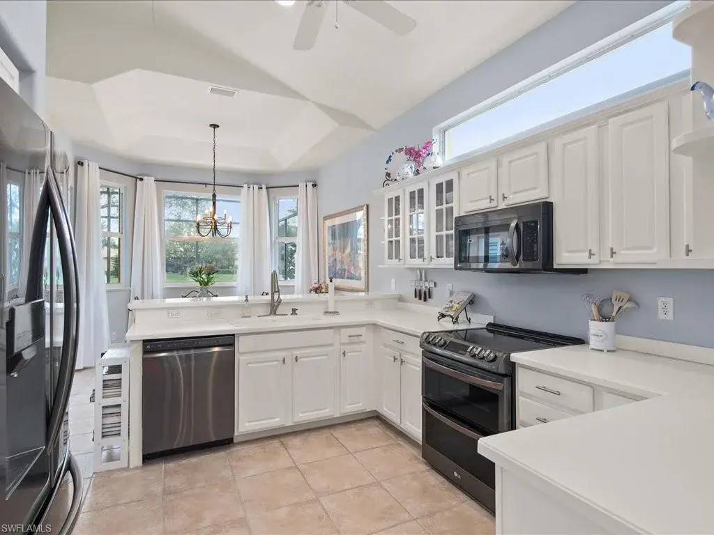 Welcome to this light and bright cottage by the lake featuring three bedrooms and a den, two bathrooms, formal dining room, breakfast room, and spacious great room. Upgrades include quartz countertops, new sinks, faucets, shower heads, toilets, appliances, light fixtures, window treatments, fresh paint, wood plank tiles, water heater, landscaping, full glass front door and much more! This home is situated in one of the best locations in Tuscany Cove with beautiful views of the fountain on the lake. Tuscany Cove has wonderful amenities including resort style pool, and spa, kiddie pool and playground, basketball court, tennis and pickle ball courts, fitness center, children’s room, billiards, card room, clubhouse, conference center with kitchen, and active community with social gatherings and pickle ball leagues. It’s also close to shopping and dining.