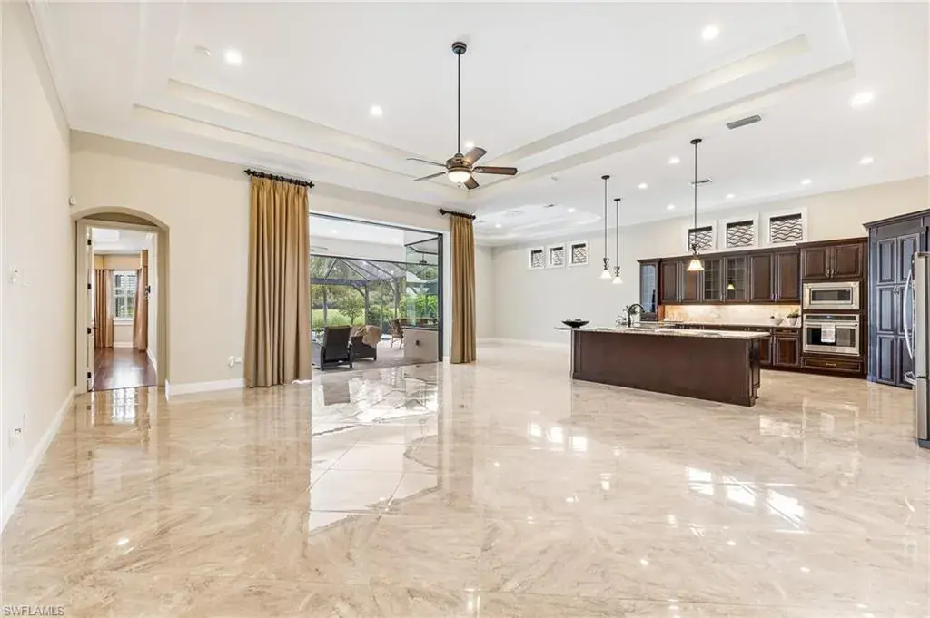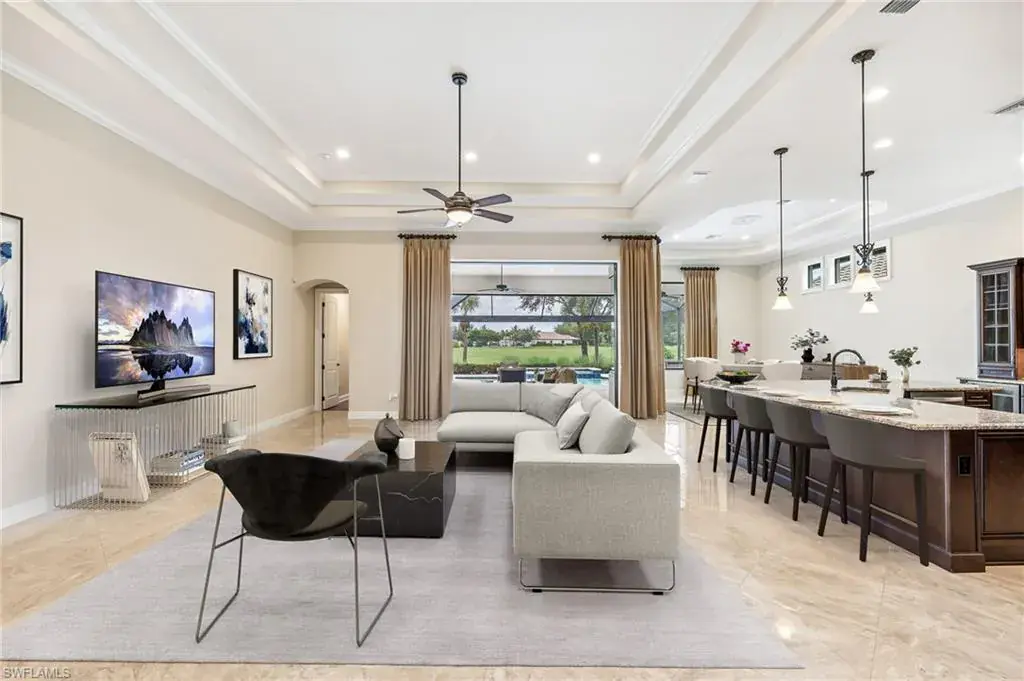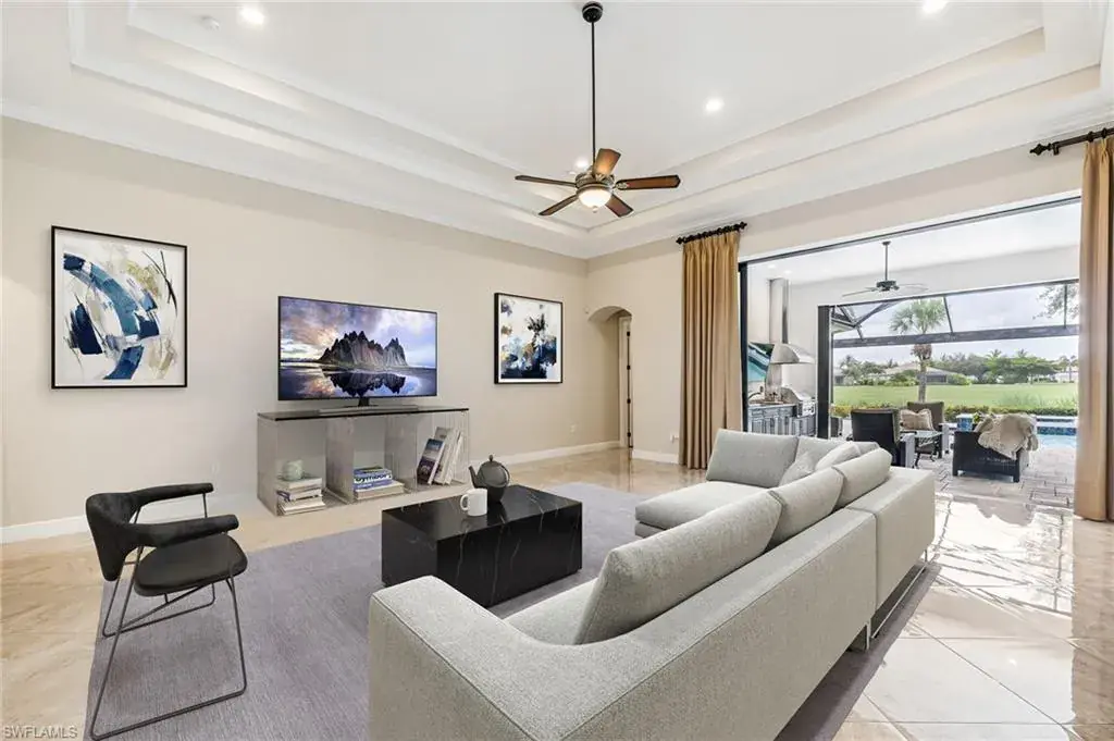 From the moment you enter the gated community of Twin Eagles, you feel like you are on vacation. Twin Eagles is one of the finest golf communities in SW Florida with 11,115 acres of natural tranquility near a large nature sanctuary. The landscapes are breathtaking with 36 holes of championship golf surrounded by lakes, preserves and abundant wildlife earning the prestigious Audubon accreditation. Experience a combination of wildlife, world class amenities and immediate access to two championship 18-hole golf courses that have been used in both PGA and LPGA events, as the golf membership is deeded with the home. You can play golf on the same day of the Closing. Just pay the initiation fee. Discover your dream home where sophistication and comfort blend seamlessly. This home spans 3,083 square ft with 3 bedrooms + den, 3 ensuite baths & powder room. Upon entering this home, you are drawn to the richness of the upgrades and golf course vistas. Located on the 6th fairway of the Eagle course near its green, the open concept living space is designed for effortless entertaining, featuring a gourmet kitchen with stainless steel appliances, extended cabinetry and a island with extended breakfast bar for casual dining. An upgraded custom outdoor kitchen is ideal for alfresco dining. Enjoy the view through the picture/panoramic pool cage. The primary suite feels like a retreat, with views to the lanai and spa. Primary bath is upgraded with additional storage, a large whirlpool tub, large walk-in shower and separate vanities. All guest bedrooms offer upgraded ensuite baths. Other features include custom closets throughout, newer appliances, oversized 2 car garage, soft close cabinetry with pull out drawers in the kitchen, 4 panel recessed sliders opening up the main living area to the outdoors. With a flick of a button or light push, you have hurricane protection for your lanai, windows, and entryway with Storm Smart shutters. As a Twin Eagles resident, you will have access to a wide range of luxurious amenities, including a newly renovated $23 million clubhouse featuring 3 restaurants, a resort style swimming pool, state-of-the-art fitness facility, har-tru tennis courts, pickleball and bocce courts. Twin Eagles is more than a club, it is a lifestyle whether relaxing, golfing, recreation or social gatherings, this home provides it all!