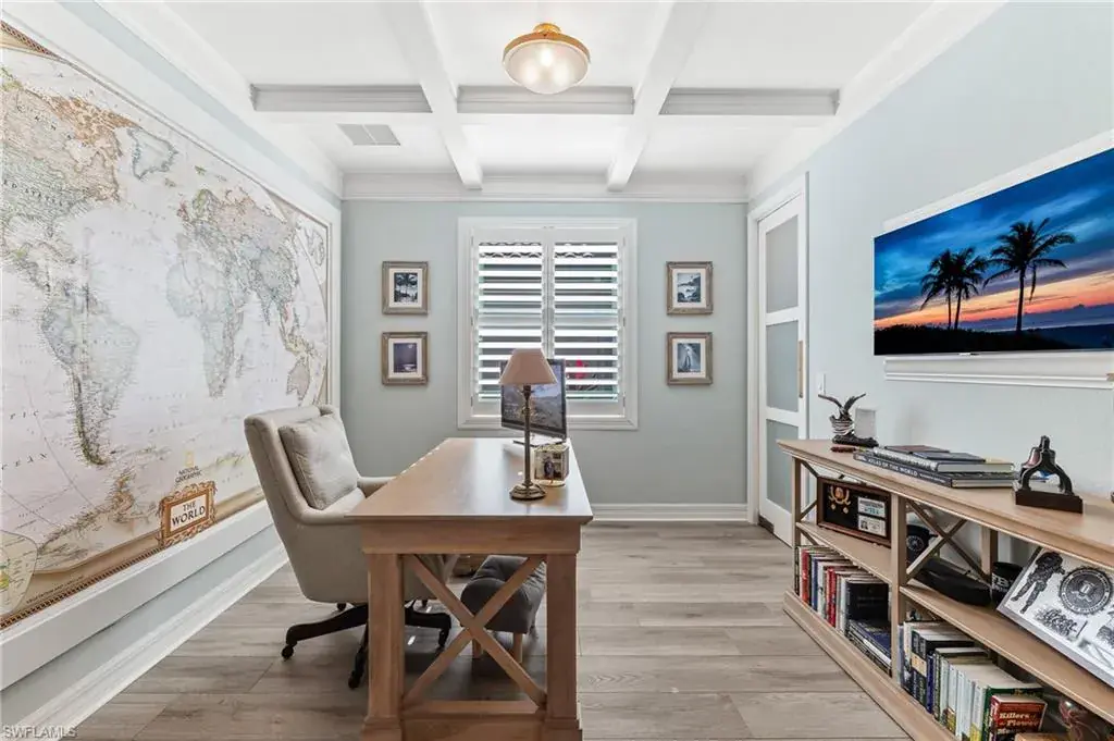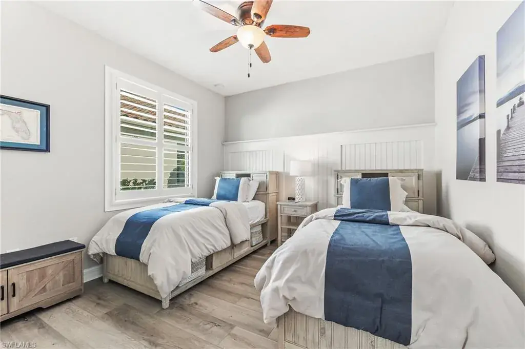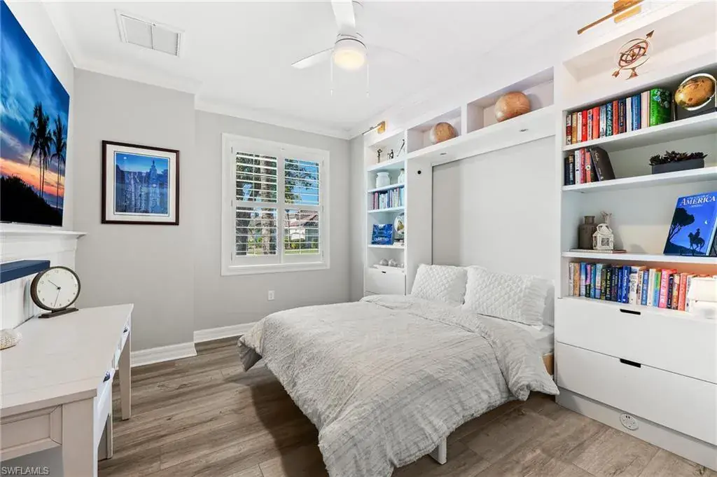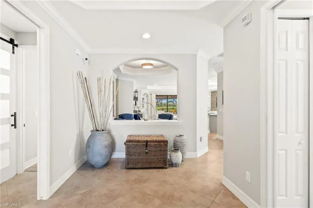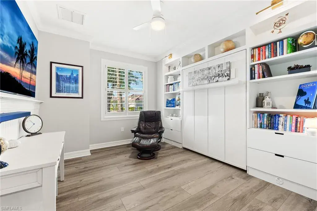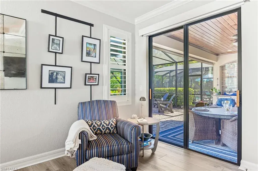 Discover a rare opportunity to experience wildlife, world-class amenities, and immediate golf access with a deeded golf membership included. Imagine playing the very day you close—on one of two championship 18-hole golf courses. Nestled within the gated community of TwinEagles, this Audubon-certified sanctuary spans 1,115 acres of natural beauty adjacent to a protected nature preserve. Deer, wild turkeys, and native birdlife roam freely, creating a tranquil backdrop to a lifestyle defined by leisure and luxury. This beautifully maintained single-family home offers approximately 2,300 sq. ft. of well-designed living space with 3 bedrooms + den, a bonus room, and 2 baths. Every detail has been thoughtfully curated—combining sophistication, comfort, and functionality. The open-concept floor plan is perfect for entertaining. Enjoy the custom dining area with built-in bench seating, a cozy sitting area just off the living room, and expansive golf course views through wide sliders. The gourmet kitchen features an oversized circular island with wrap-around counter seating, custom cabinetry, and newer stainless steel appliances. Step outside to your private outdoor oasis—a spacious lanai with outdoor kitchen, multiple seating areas, and panoramic screen enclosure framing long golf course vistas. Relax by the pool, dine al fresco, or enjoy morning coffee beside the decorative trellis and flower boxes that enhance the serene ambiance. The primary suite offers direct pool access, long golf views, two custom built-in closets, and a spa-inspired ensuite bath. Two guest suites provide flexibility, including one with a custom Murphy bed. The den doubles as a media room or home office and includes a bonus room with beverage center for added convenience. Additional highlights include impact-resistant windows and doors, electric storm screen for shade and protection, designer lighting and ceiling fans, coffered ceiling in the den, custom wood accent wall coordinating with the kitchen island.