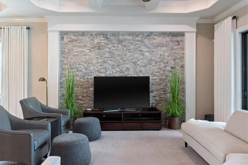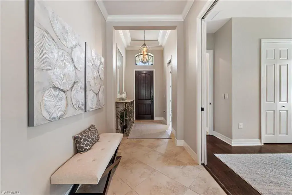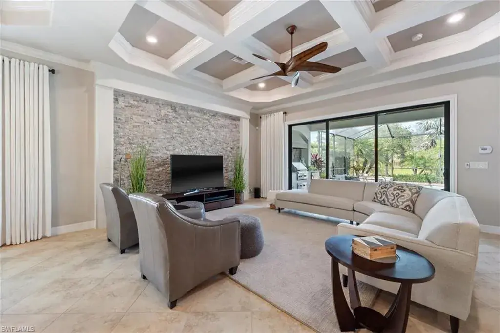 Welcome to 12707 Kinross Lane, a distinguished residence located in the heart of Naples, FL. This stunning home is the epitome of elegance and intelligent design, offering a seamless blend of style and comfort. Encompassing 2,224 square feet, this three-bedroom plus den, 3 baths all complemented by a 2 car garage. The expansive outdoor living area is a true highlight, featuring a stunning pool, spa, and fully equipped outdoor kitchen, creating a serene tropical paradise perfect for relaxation or entertaining guests. The upgraded kitchen features upgraded cabinets, stainless-steel built-in appliances, induction stove, all seamlessly connected to the great room for effortless entertaining. The home is enhanced by numerous upgrades, including Coffered ceiling, an upgraded trim package with crown molding, custom wall, custom lighting and fans, and elegant tile flooring. Safety and convenience are paramount, with impact windows, and entire home security alarm system in place. This home is set on a spacious 8,276-square-foot lot complete with hurricane windows and doors. As you enter, you’ll be greeted by a wonderful open floor plan with tile flooring throughout the main living areas, creating a sleek and cohesive aesthetic. The bedrooms are adorned with rich wood floors, providing a warm and inviting atmosphere. The living room features a sophisticated coffered ceiling, adding a touch of grandeur to your living space. Your gourmet kitchen is a chef’s paradise, complete with GE stainless steel appliances, beautiful wood cabinetry complemented by quartz countertops and a striking backsplash, making it both functional and visually appealing. Each bathroom is designed with quartz countertops, offering a luxurious and serene environment. The primary ensuite is a sanctuary of relaxation, complete with a luxurious bathroom featuring a shower, a soaking tub, and dual vanities, providing a spa-like experience in the comfort of your own home. Step outside to discover your personal outdoor oasis! The screened-in patio is perfect for alfresco dining or leisurely afternoons, while the pool and spa offer a refreshing escape with breathtaking views as your backdrop. Located in the prestigious Twin Eagles community, residents enjoy 1,115 acres of natural beauty and tranquility, along with access to two Championship Golf Courses—the Talon course designed by the Nicklaus Group and The Eagle Course by Steve Smyers. The community boasts a new clubhouse, bocce courts, a Himalayan putting green, a fitness center, tennis and pickleball courts, a resort-style pool, and a tiki bar. You can enjoy the Social Membership with unlimited use of all dining areas, fitness areas, social facilities of the Club with limited golf privileges. An immediate full golf membership is available at an extra cost for those looking to immerse themselves in this luxurious lifestyle.