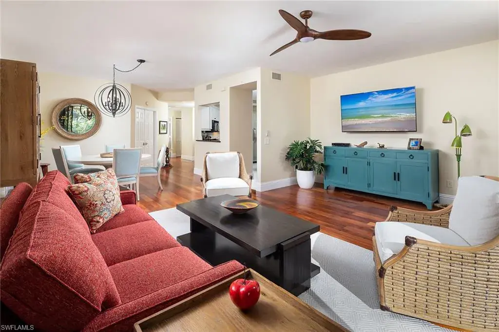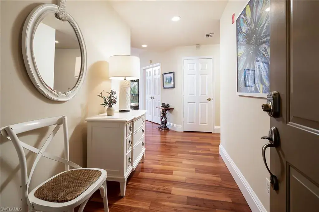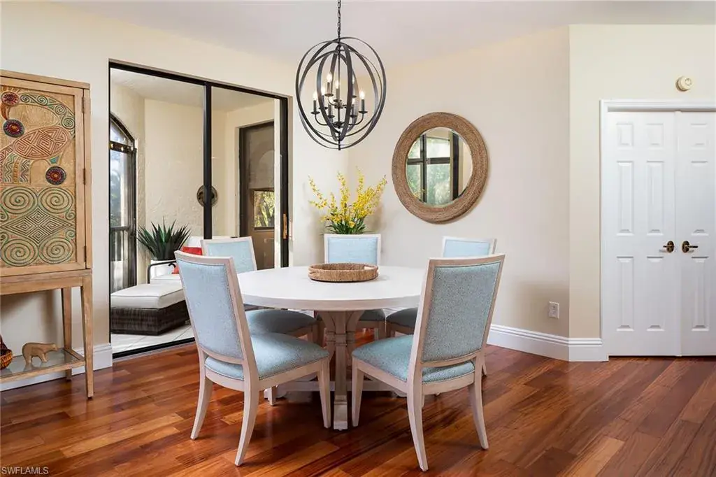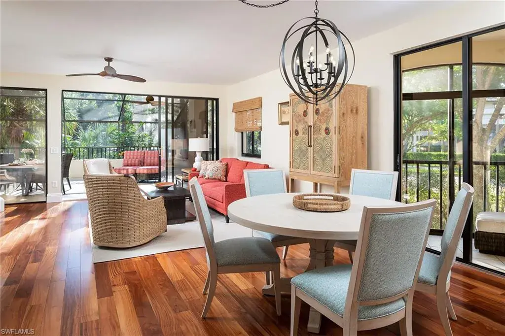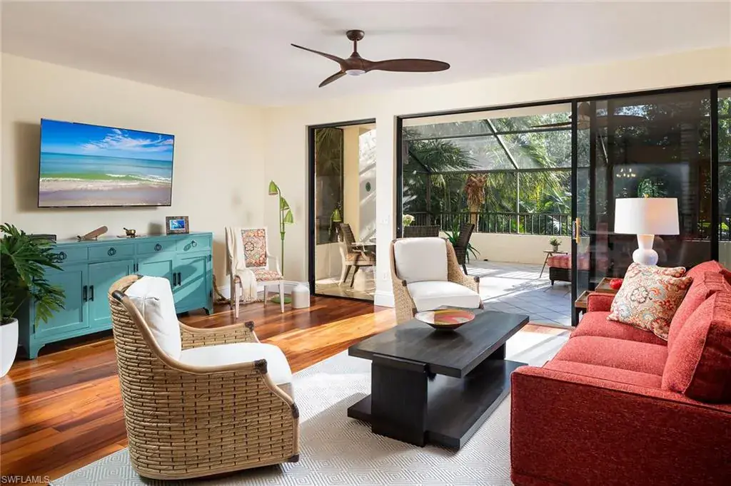 Valencia at Pelican Bay! Spacious three-bedroom, two-bath end-unit with over 1,800 square feet of living space and a large main lanai to dine and relax. Kitchen with granite countertops and morning room. Beautiful wood floor in main open living areas. The primary suite includes a private screened-in sitting area, wood floor, two walk-in closets, a walk-in shower, dual sinks, and jetted tub. Valencia residents enjoy a community pool and clubhouse. Pelican Bay residents enjoy an active social calendar with art class, book club, Sip-and-Chat, water aerobics., tennis, biking, and more. The tram to the beach is within a short distance. Come see why many love calling Pelican Bay home.