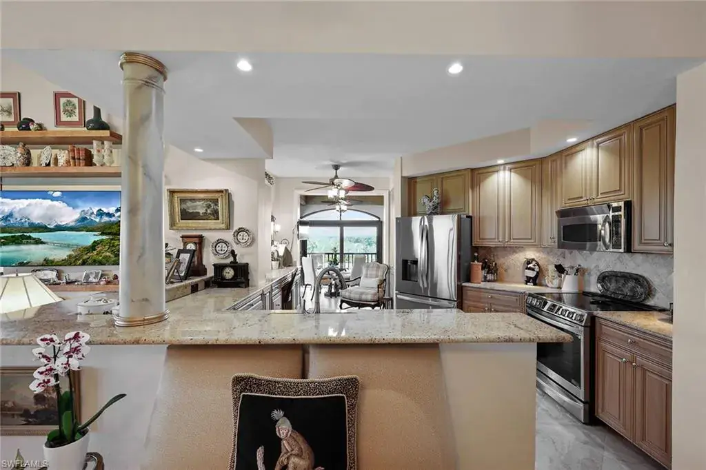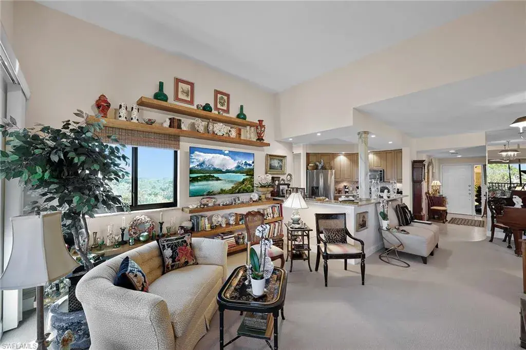 Enjoy an ideal mid-rise penthouse location in Valencia at Pelican Bay. This beautiful corner unit features an open living area with volume ceilings, two glassed-in lanais and an additional open-air lanai, all surrounded by nature. Two bedrooms, two baths, custom kitchen cabinets, granite countertops, new high-end appliances, impact-resistant windows and sliders, Storm Smart mesh hurricane screens, under-building parking, extra storage, community pool, community clubhouse, and much much more. Valencia is a short walk to The Commons, convenient to both tennis complexes, walking/biking paths, the community center and all the first-class amenities Pelican Bay has to offer. Enjoy the Naples lifestyle in a gorgeous setting, perfectly located to the Waterside Shops, Artis—Naples, and restaurants. Come and see why many love calling Pelican Bay home.