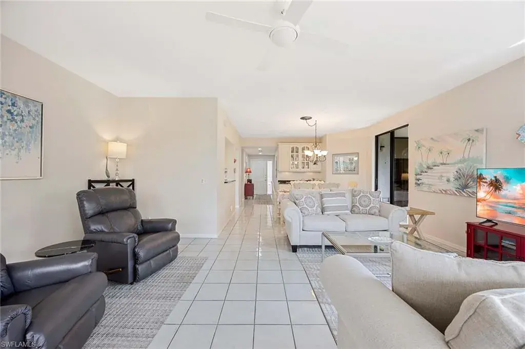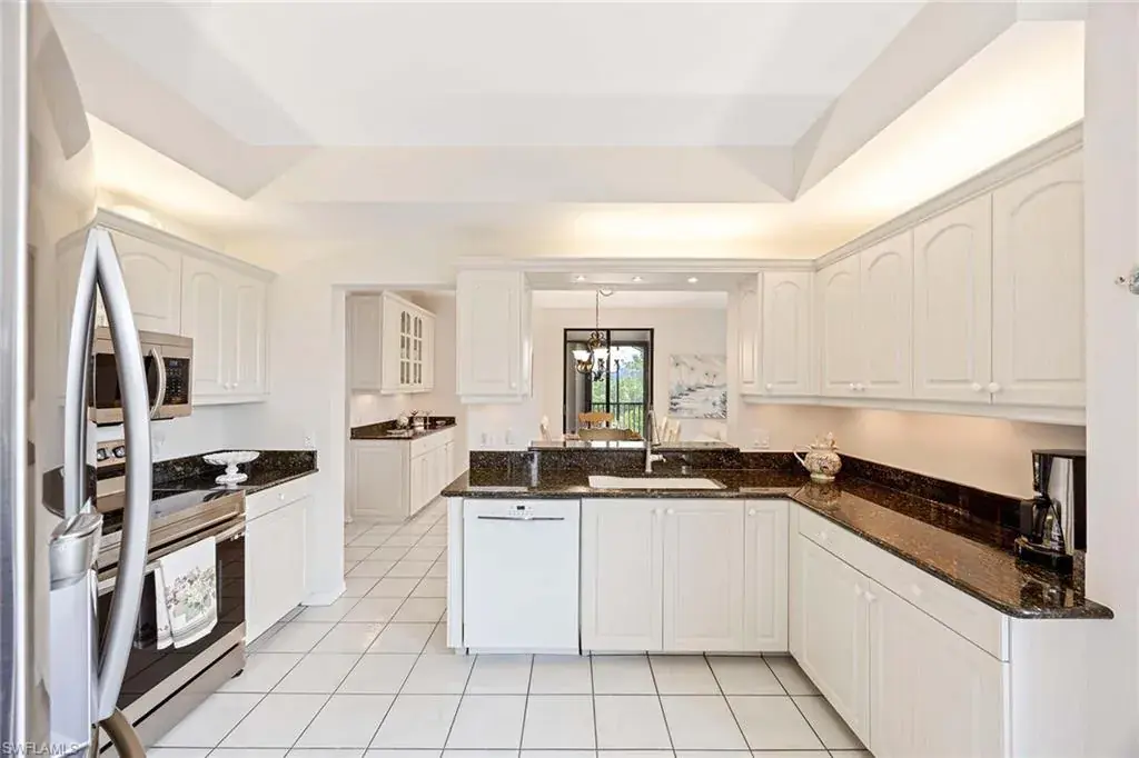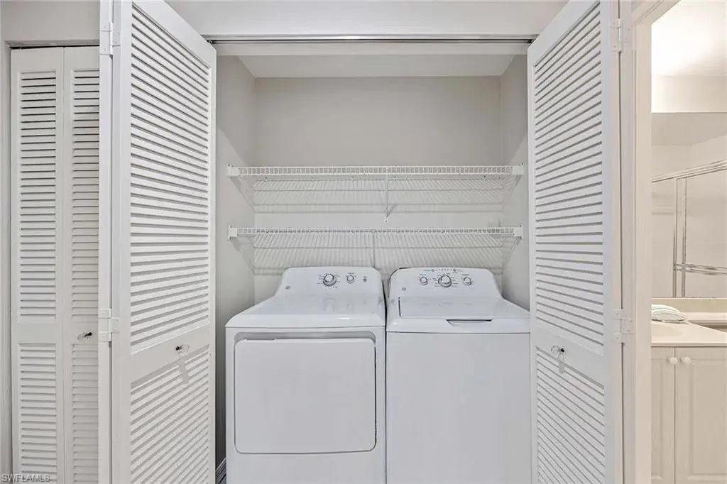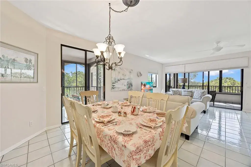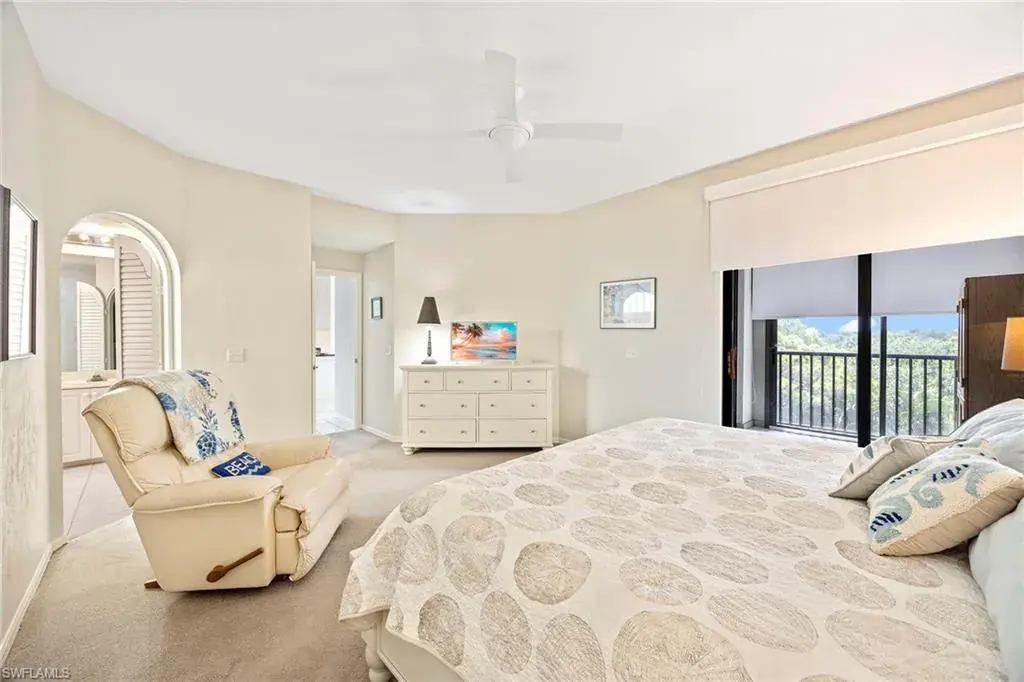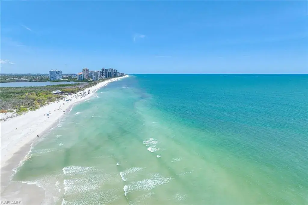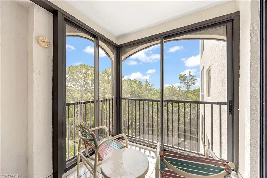 Valencia at Pelican Bay is one of the desirable locations in Naples! In the heart of Pelican Bay, it is a short distance to the Tennis Commons area, Boardwalk Beach tram and the Sand Bar Restaurant. The private Club at Pelican Bay is also a short distance and offers social and golf memberships. The Valencia community is a beautifully landscaped enclave including a large, heated pool, spa, sundeck and cabana overlooking a tranquil lake. Inspired by its namesake in Spain, Valencia was designed to encompass architectural elements reminiscent of Valencia. This fourth-floor residence has three balconies and spacious walk in primary bedroom closet. The kitchen features a new stove and refrigerator and access to a balcony. Every window and sliding glass door frames lush tropical vegetation and treetops with blue skies and sunlight. New carpet in both bedrooms and main bath has a shower and tub. Casually furnished for easy living.