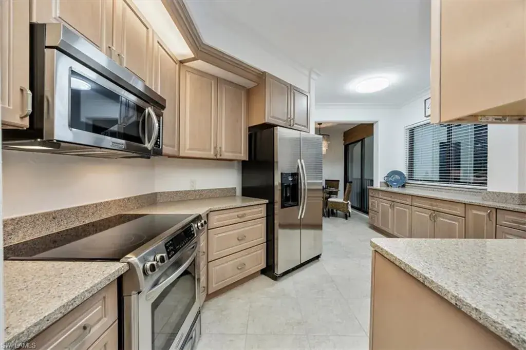 Blending casual elegance with modern luxury this open floor plan creates the perfect setting for relaxed coastal living. The spacious kitchen, two dining areas and generous living room flow effortlessly into the screened lanai, making entertaining a breeze. With 9-foot ceilings, beautiful millwork and a spa-inspired primary bath, every detail has been thoughtfully designed for comfort and style. Newly installed impact-resistant sliders and windows enhance the serene park views while flooding the space with natural light. Additional features include underground parking and a private storage room.