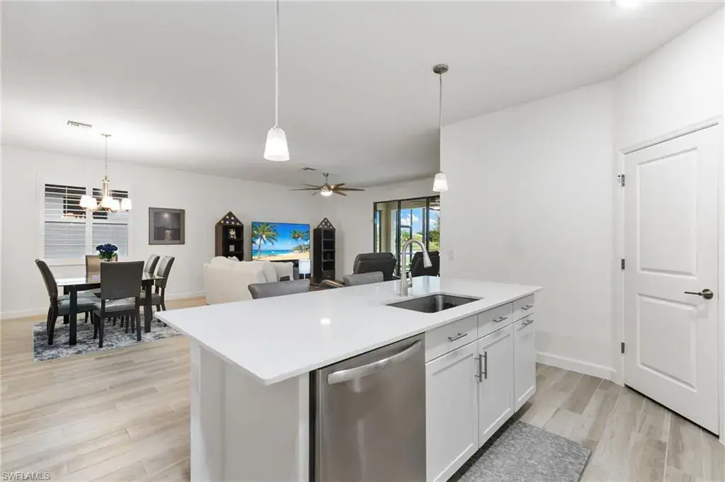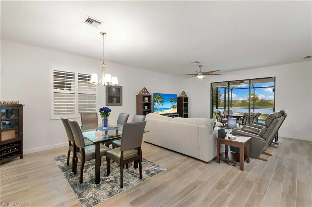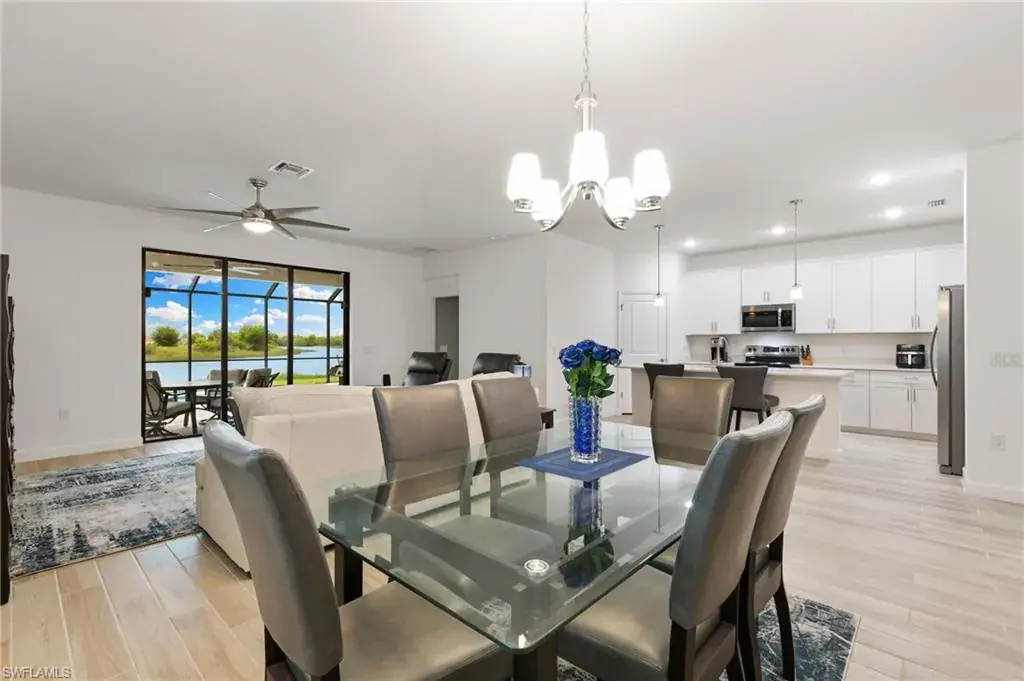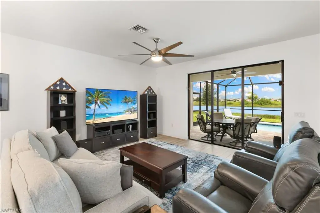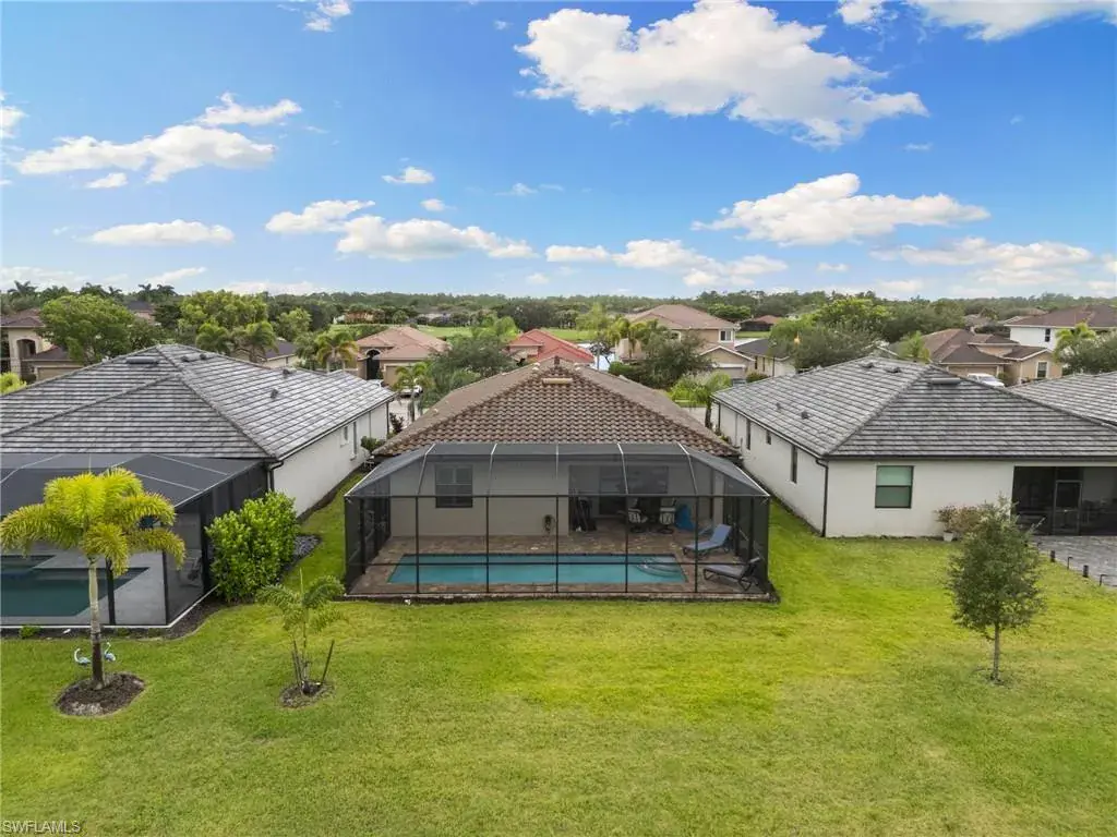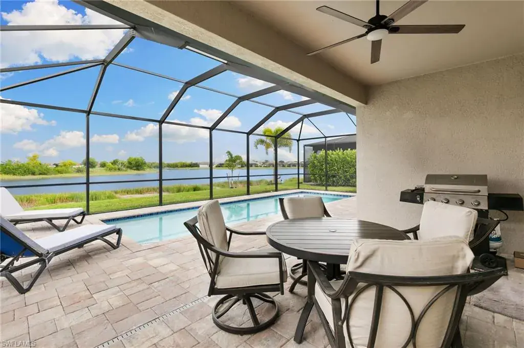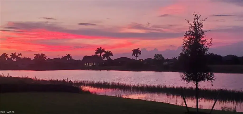 Welcome to your piece of paradise in sunny Naples! This stunning single-family home features the popular one-story Trevi floor plan, offering a spacious 4-bedroom, 3-bathroom layout with a desirable Split Bedrooms design for maximum privacy. The true highlight of this home is the private, screened lanai and beautiful below-ground pool, which provide spectacular, direct waterfront views of the lake. With its ideal western exposure, the property is perfectly positioned for you to witness breathtaking sunsets over the water every evening, creating a serene and unforgettable backdrop for both relaxation and entertaining. Beyond the stunning views, you’ll also have access to a resort-style Clubhouse, pool, exercise room, library, tennis courts, and a public golf course, all conveniently located just moments from a local shopping center. This home truly offers the best of Florida living with an incredible view.