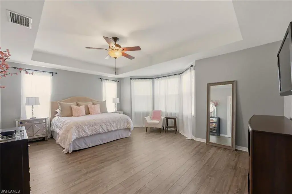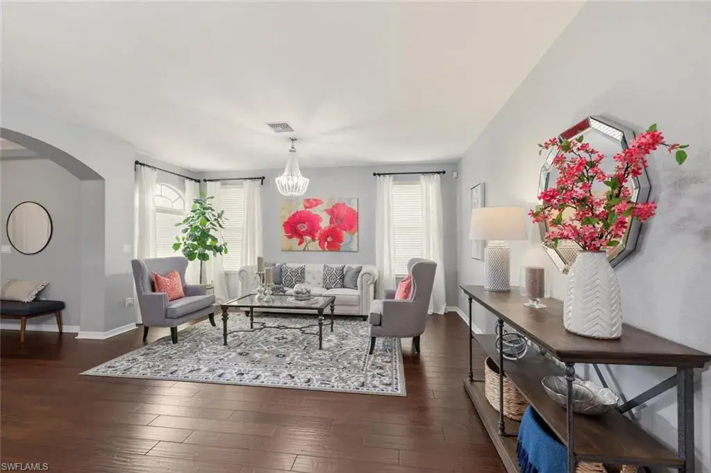 Welcome to this spacious 4-bedroom, 2.5-bath single-family pool&spa home located in Valencia Country Club! Upon entering you will be amazed at how meticulous and clean the property is kept reminiscent of a model home. The first floor layout is inviting and has a seamless flow throughout. Enjoy multiple living and dining areas that provide flexibility for entertaining and quiet relaxation.Offering an eat-in kitchen complete with island, abundant cabinet and counter space and plenty of windows throughout help fill the home with natural light. Step outside and enjoy your private oasis featuring a heated pool and spa, surrounded by lush coconut palms, situated on nearly a quarter-acre lot with views of the golf course. All bedrooms and 1 guest bathroom are located upstairs including the large primary suite which offers a peaceful retreat with plenty of room to unwind. Other notable features include double-door entry, charming light fixtures, no carpet, a convenient downstairs powder room for guests, newer roof, pool pump, HVAC, and water heater for carefree living. Value and quality come together to present a “don’t miss” opportunity. Schedule your private showing today!