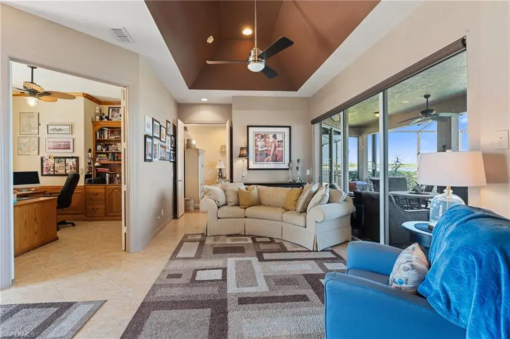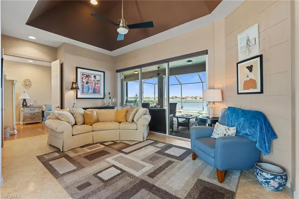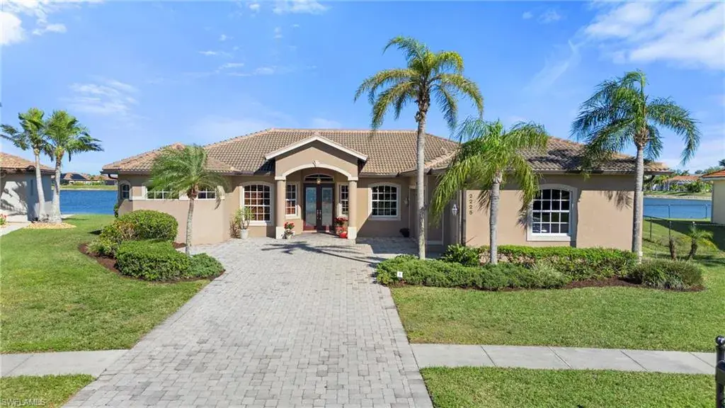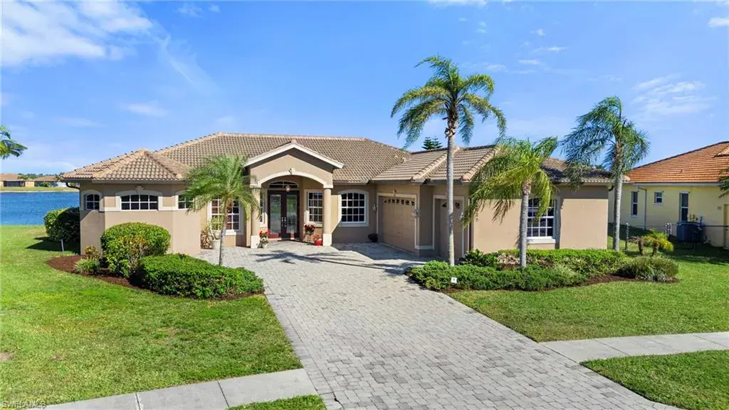 Welcome to 2225 Valencia Lakes Circle, a stunning lakefront home offering some of the best water views in Naples. This 3-bedroom + den, 3-bath residence sits on an extra-wide lot with eastern sunrise exposure, creating the perfect backdrop for peaceful mornings and picturesque views. With nearly 2,600 sq. ft. of living space, this home is designed for both luxury and functionality. The updated kitchen features modern finishes, while tile and hardwood flooring throughout add warmth and elegance. Custom shades provide privacy and style, and a custom wine rack adds a unique touch. The home is equipped with separate cooling systems for personalized comfort in different areas.
