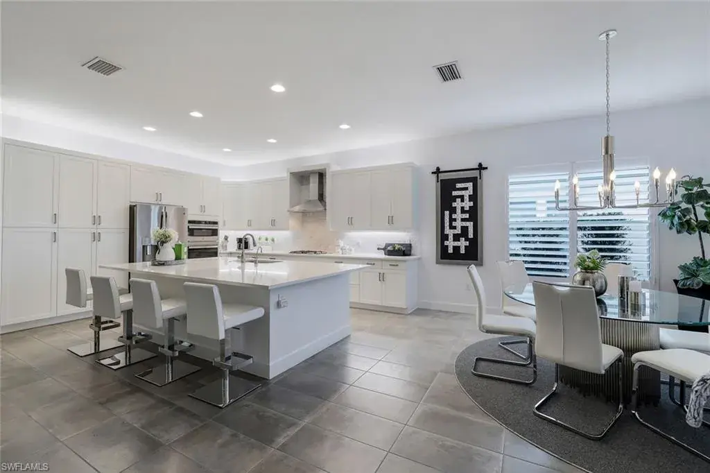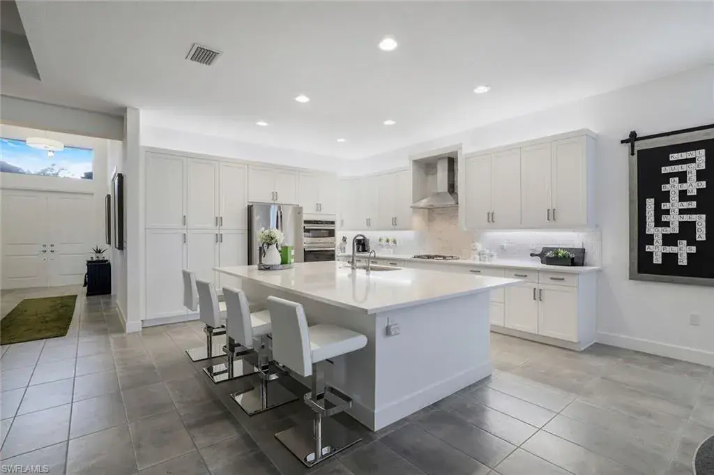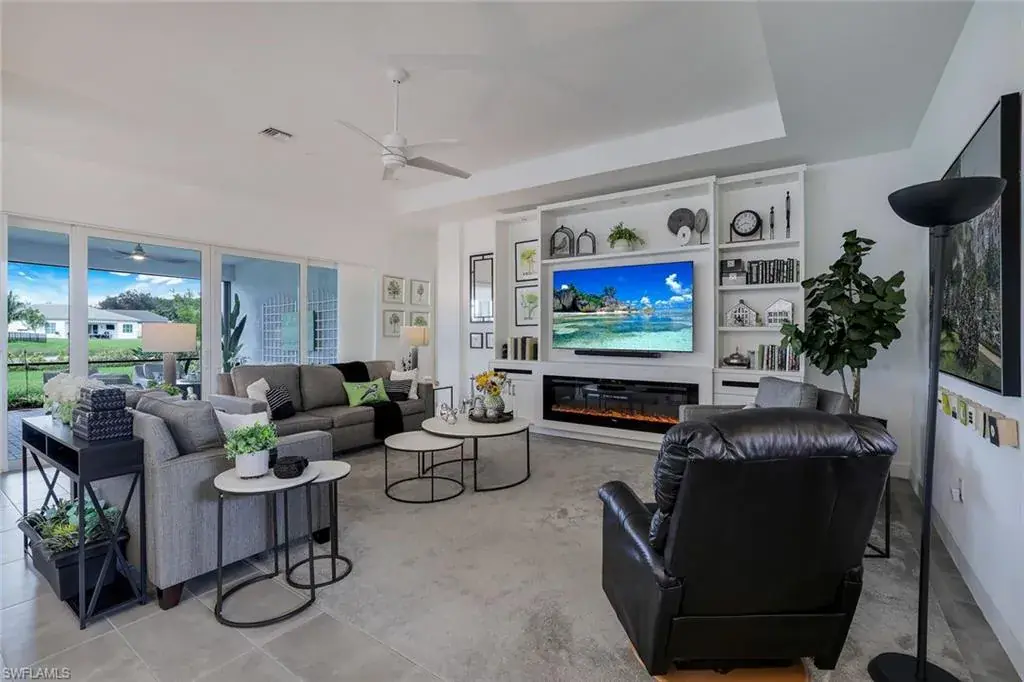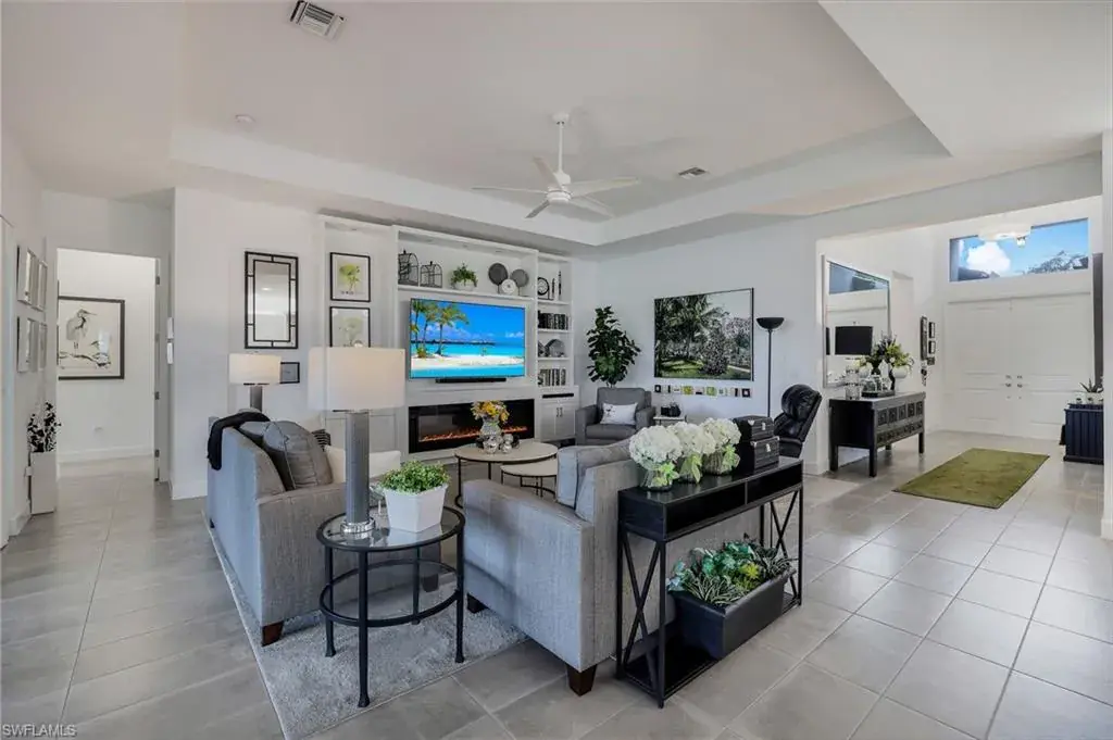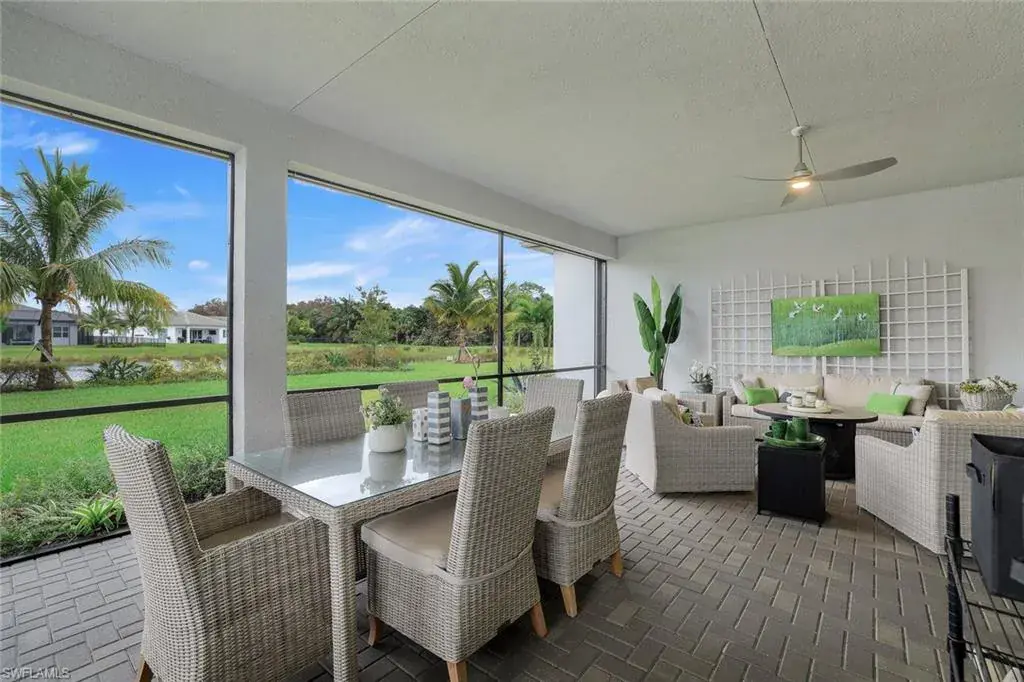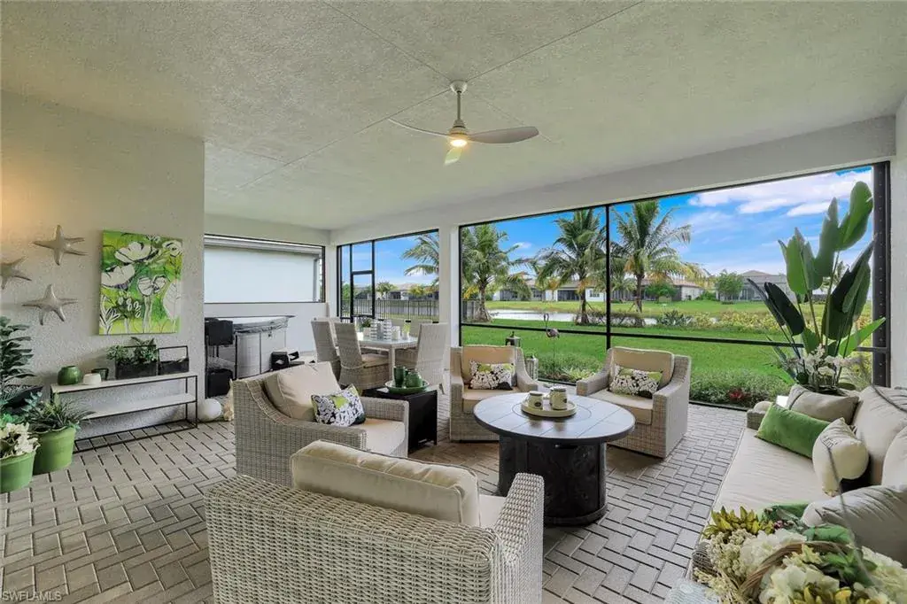 Major price improvement!! Welcome to your Dream Home in Valencia Trails! Nestled on a serene cul-de-sac, this stunning fully furnished home boasts breathtaking lake views and impeccable landscaping. Spanning 2,788 square feet, the Sunrise floor plan features an open-concept layout packed with upgrades that create a warm, inviting atmosphere. As you step inside, you’ll be greeted by a seamless flow between the living and dining areas, perfect for entertaining. The gourmet kitchen is a chef’s delight, equipped with custom cabinetry, ample pull-out pantry drawers, an insta-hot water system, and a spacious island that serves as the heart of the home. The living room is designed for comfort, featuring a built-in wall unit and a cozy fireplace, ideal for relaxing evenings.This exquisite residence includes three bedrooms, each with its own en-suite bathroom, plus a convenient powder room for guests. The thoughtfully designed laundry room offers a sink and generous cabinet space. Step outside to discover the expansive covered lanai, perfect for al fresco dining, complete with a natural gas hookup for an outdoor kitchen. There’s also plenty of space for a future pool. Additional highlights include a split air conditioning unit in the garage for year-round comfort, custom cabinets, garage lifting storage, and epoxy flooring. Storm smart screens offer extra protection during inclement weather, while a state-of-the-art generator ensures uninterrupted power. Valencia Trails enriches your lifestyle with world-class amenities. Enjoy the grand 43,000-square-foot clubhouse, featuring a full-service restaurant and bar, a theater hosting live shows, a cutting-edge gym, card rooms, a cooking studio, and a luxurious spa. Outdoor enthusiasts will appreciate the dog park, bocce and pickle ball courts, tennis courts, and resort-style and lap pools, complete with private cabanas.Experience refined living in this elegant home, where every day feels like a retreat in the vibrant community of Valencia Trails. Don’t miss your chance to make this extraordinary property your own!