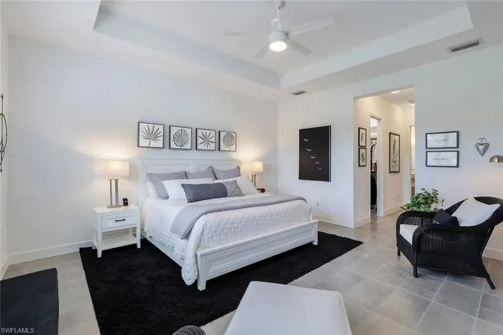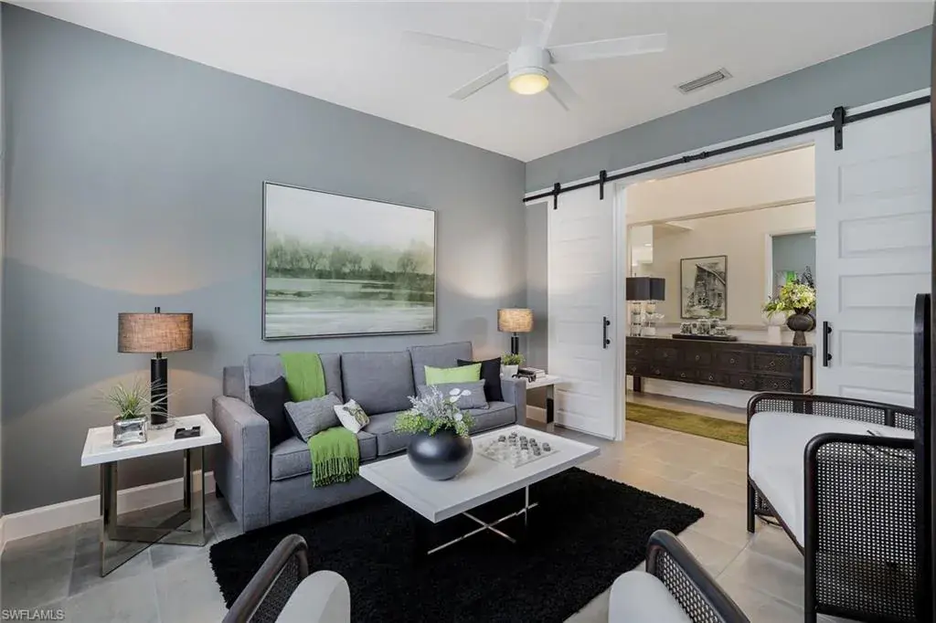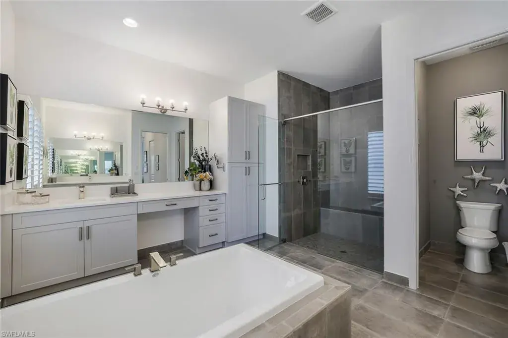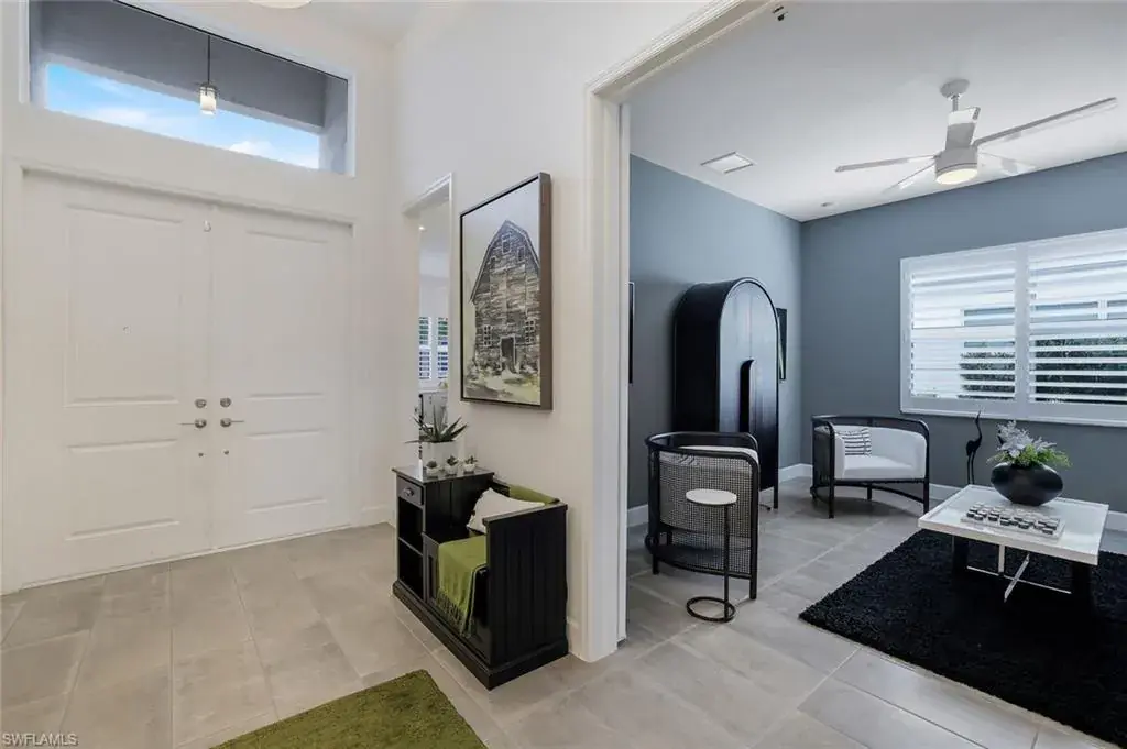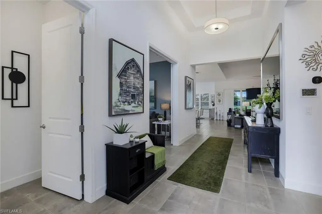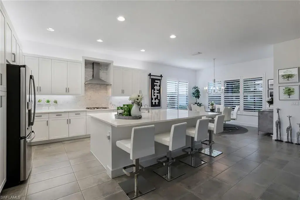 Major price improvement!! Welcome to your Dream Home in Valencia Trails! Nestled on a serene cul-de-sac, this stunning fully furnished home boasts breathtaking lake views and impeccable landscaping. Spanning 2,788 square feet, the Sunrise floor plan features an open-concept layout packed with upgrades that create a warm, inviting atmosphere. As you step inside, you’ll be greeted by a seamless flow between the living and dining areas, perfect for entertaining. The gourmet kitchen is a chef’s delight, equipped with custom cabinetry, ample pull-out pantry drawers, an insta-hot water system, and a spacious island that serves as the heart of the home. The living room is designed for comfort, featuring a built-in wall unit and a cozy fireplace, ideal for relaxing evenings.This exquisite residence includes three bedrooms, each with its own en-suite bathroom, plus a convenient powder room for guests. The thoughtfully designed laundry room offers a sink and generous cabinet space. Step outside to discover the expansive covered lanai, perfect for al fresco dining, complete with a natural gas hookup for an outdoor kitchen. There’s also plenty of space for a future pool. Additional highlights include a split air conditioning unit in the garage for year-round comfort, custom cabinets, garage lifting storage, and epoxy flooring. Storm smart screens offer extra protection during inclement weather, while a state-of-the-art generator ensures uninterrupted power. Valencia Trails enriches your lifestyle with world-class amenities. Enjoy the grand 43,000-square-foot clubhouse, featuring a full-service restaurant and bar, a theater hosting live shows, a cutting-edge gym, card rooms, a cooking studio, and a luxurious spa. Outdoor enthusiasts will appreciate the dog park, bocce and pickle ball courts, tennis courts, and resort-style and lap pools, complete with private cabanas.Experience refined living in this elegant home, where every day feels like a retreat in the vibrant community of Valencia Trails. Don’t miss your chance to make this extraordinary property your own!