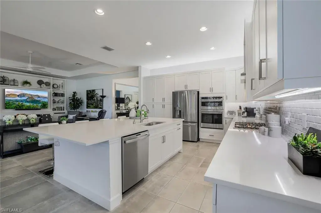 Gas Cooktop, Dishwasher, Disposal, Dryer, Instant Hot Faucet, Microwave, Refrigerator/Freezer, Reverse Osmosis, Self Cleaning Oven, Tankless Water Heater, Wall Oven, Washer