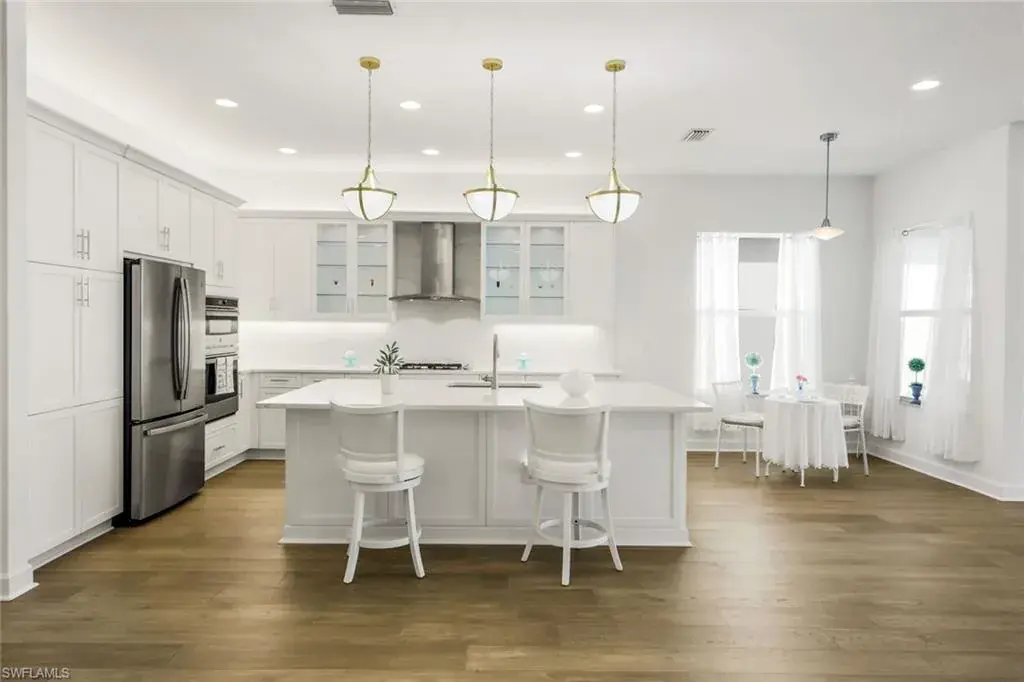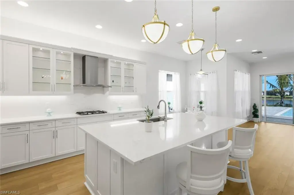 Inside, an open and airy floor plan welcomes you with abundant natural light and seamless flow, perfect for both entertaining and everyday living. The gourmet kitchen serves as the centerpiece of the home, featuring premium appliances, elegant quartz countertops, and an oversized island that’s perfect for gatherings or casual dining.