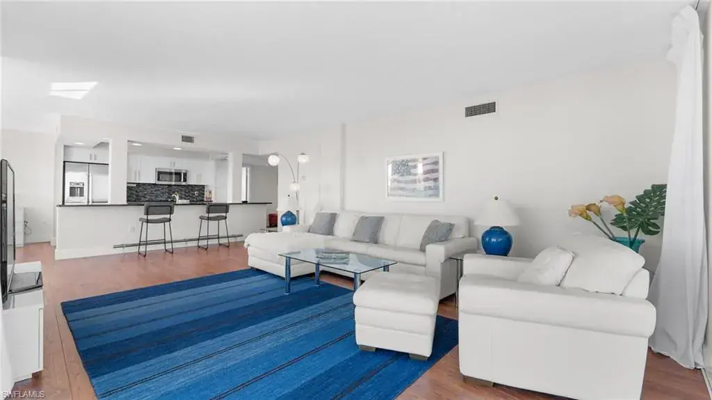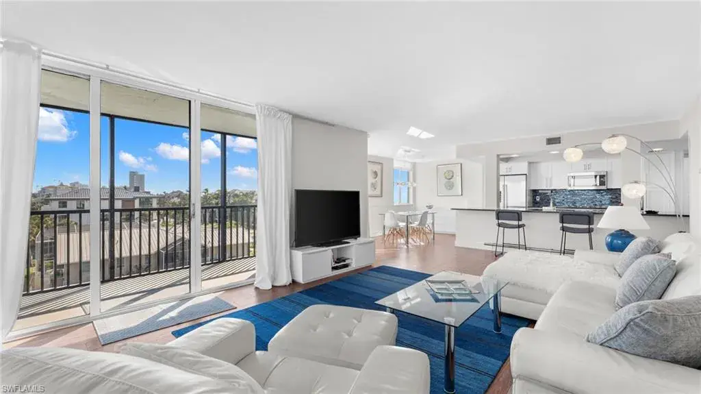 Discover the charm of a beautifully remodeled corner-end apartment located at 10420 Gulf Shore Dr. #143, Naples, FL. This residence is situated in the highly sought-after southern corner of the building, offering expansive panoramic views of the Gulf of Mexico and Vanderbilt Bay. This unit also includes a coveted deeded boat slip #8.