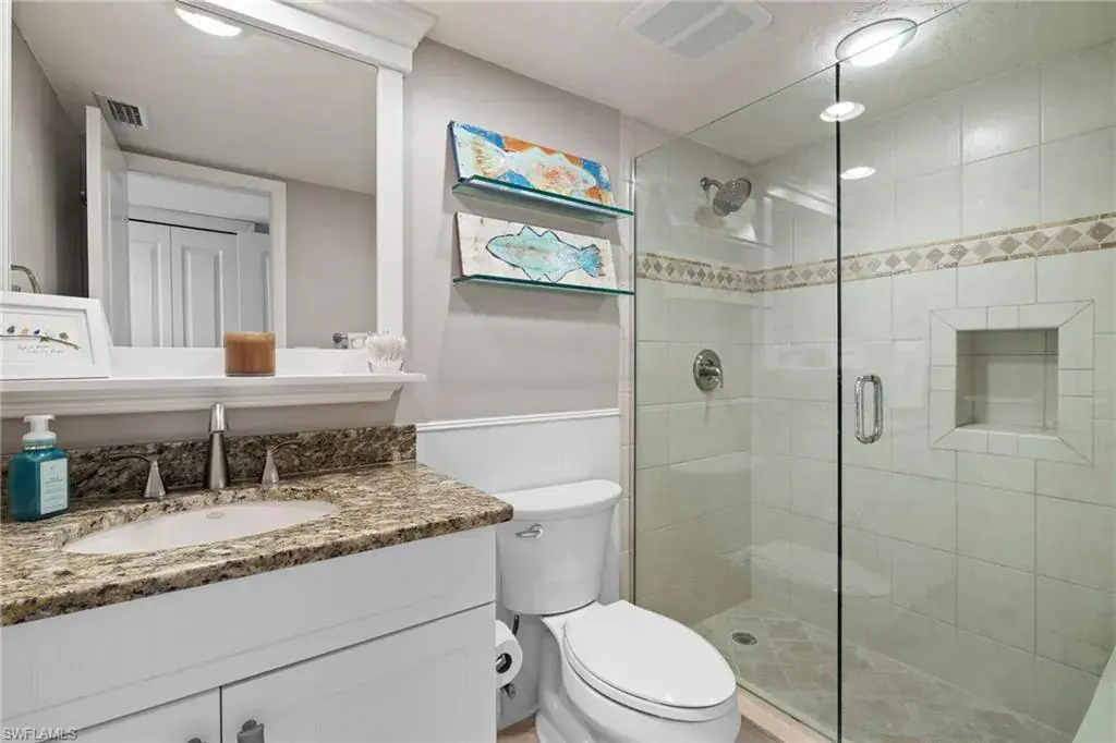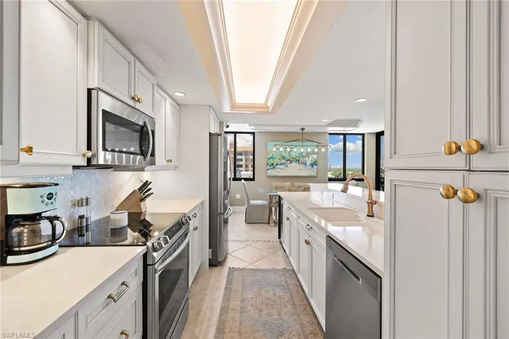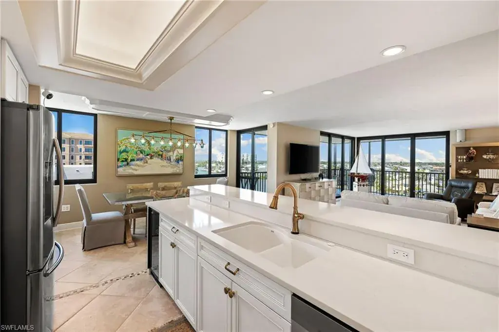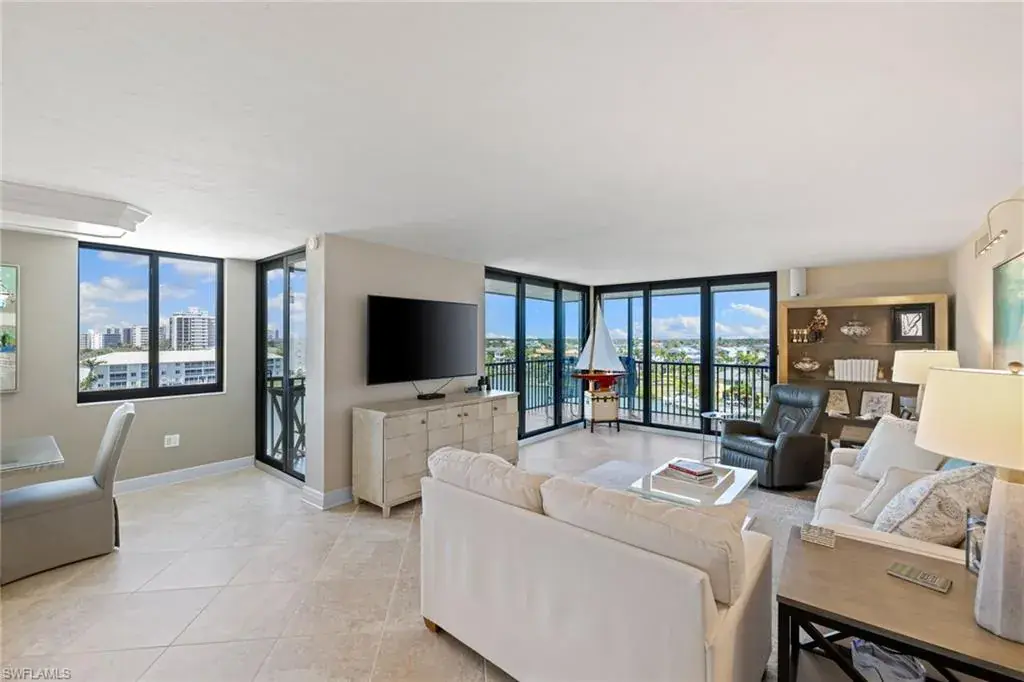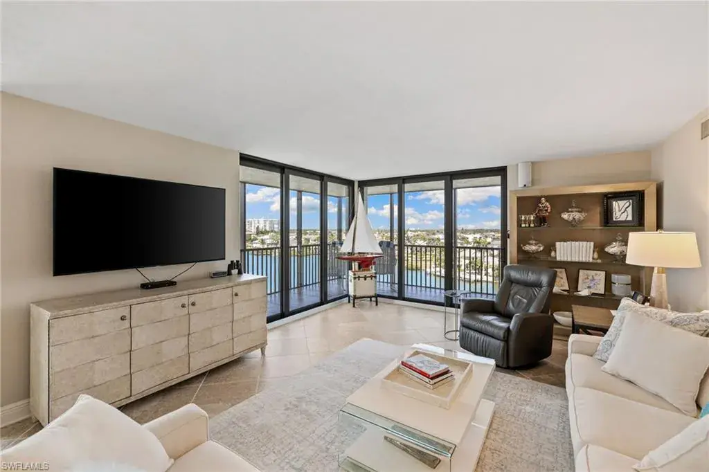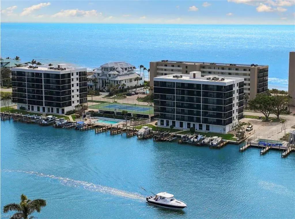 Top floor corner unit! Gulf and Bay views. Rare oversized under building garage included. This beautifully updated top floor 2-bedroom corner condo offers breathtaking panoramic views of the serene Vanderbilt Channel and the Gulf. A rare find, this property includes an oversized under-building garage space, one of only a coveted few that are wide and easily accessible. Valued at approximately $200,000. The recent renovation features an open-concept designer kitchen and impact windows and doors. Two spacious L-shaped lanais, one at the front and one at the back, provide top floor open views of the Gulf of America and Vanderbilt Bay Channel, perfect for enjoying spectacular sunrises and sunsets. This condo is just steps from the beach with private deeded access. Residents also enjoy a waterfront pool, tennis courts, and a beautifully updated lobby shared by only 36 residences at Vanderbilt Bay. This one-of-a-kind condo is your perfect Vanderbilt Beach retreat. Don’t miss this incredible opportunity!