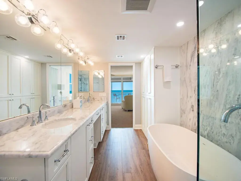 Stunning Gulf-Front Condo with Breathtaking Views and Luxury Features – Exquisite Condo offering spectacular views of both sunrises and sunsets from the expansive east and west balconies and floor-to-ceiling windows in the living room and master bedroom. Located directly on the Gulf of Mexico, this spacious 3-bedroom, 3-bath condo provides an idyllic setting with the soothing sound of the waves and regular dolphin sightings. Inside, this beautifully updated home features a brand-new kitchen with high-end finishes and top-of-the-line appliances. All three bathrooms boast luxurious quartzite and marble counters, as well as non-slip floors for safety and comfort. The condo’s layout ensures privacy and tranquility, with only three units per floor and just 12 floors in the entire building. Additionally, it comes with one of the highly desirable, secure garage parking spots located right in the building—one of only 8 spaces available. Residents enjoy access to fantastic amenities, including a tennis court, 2 pickleball courts and a heated pool overlooking the beach. This secure, pet-free building offers unmatched beach access, sweeping views, and the convenience of modern luxury living.