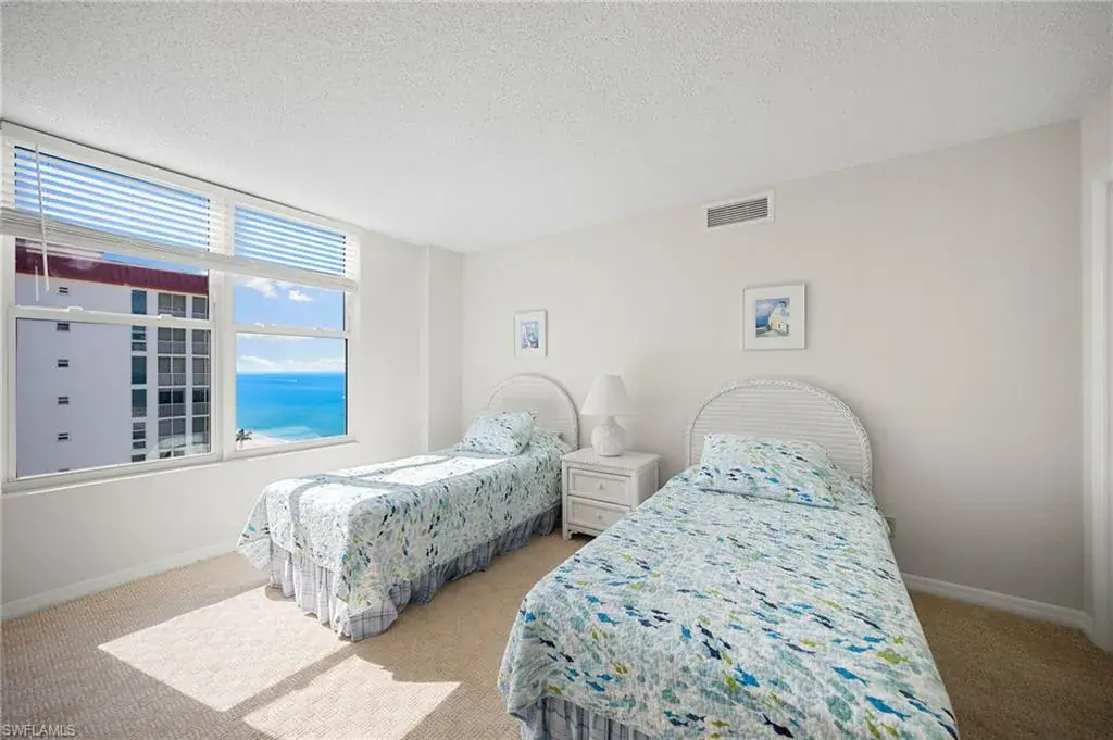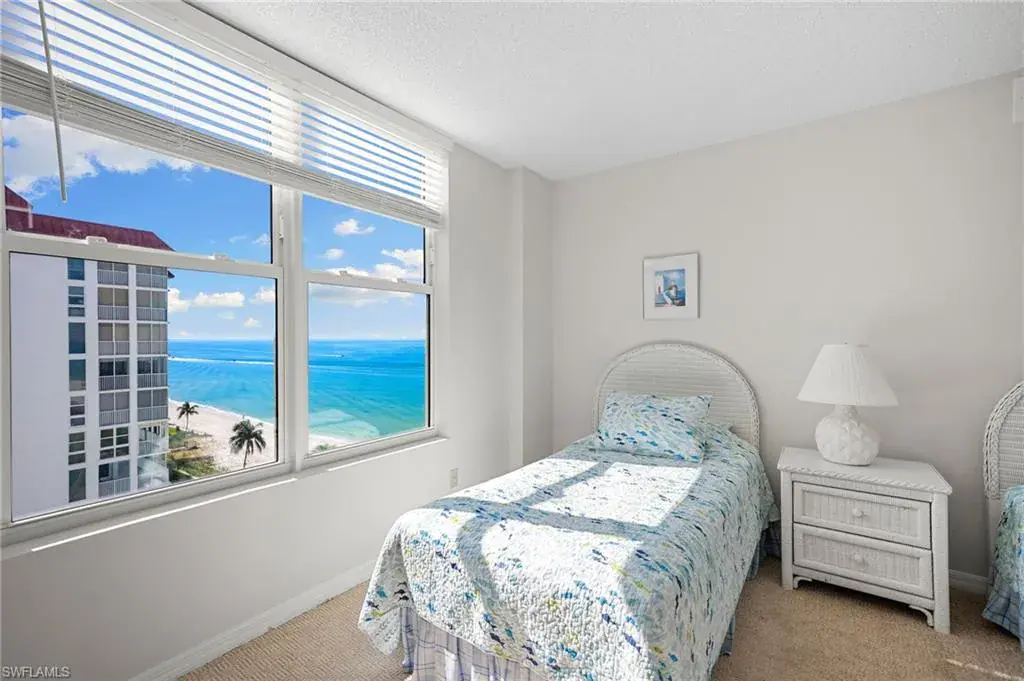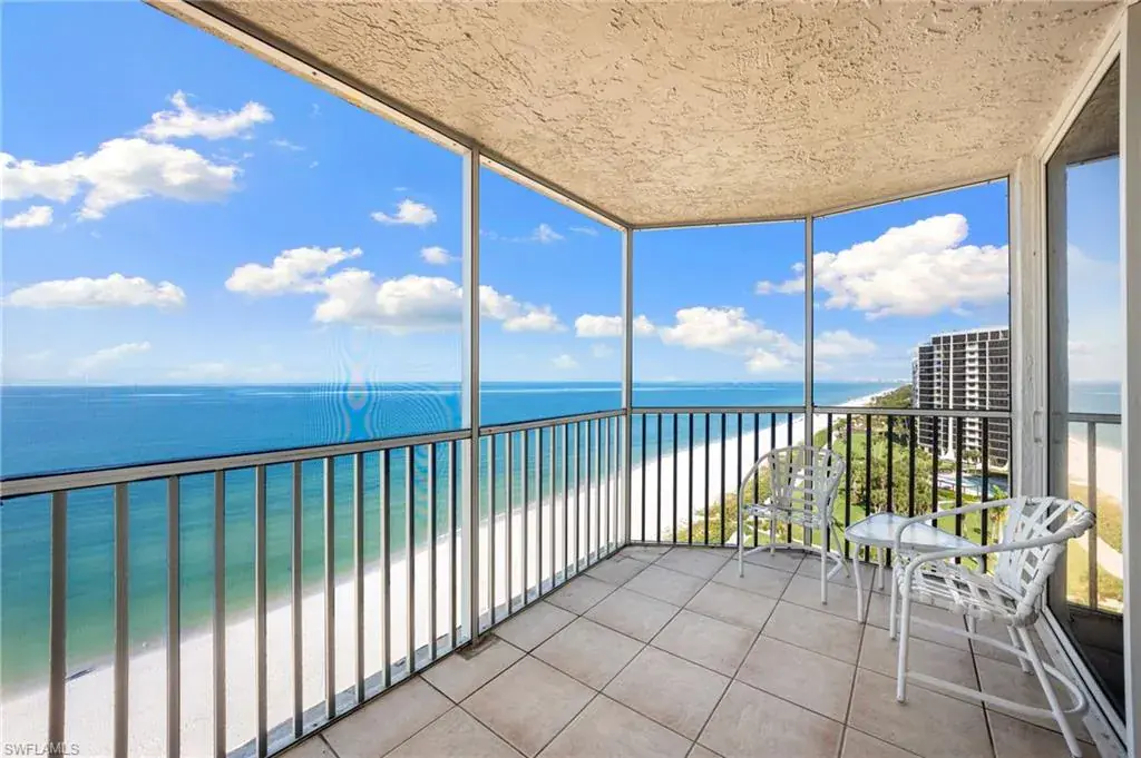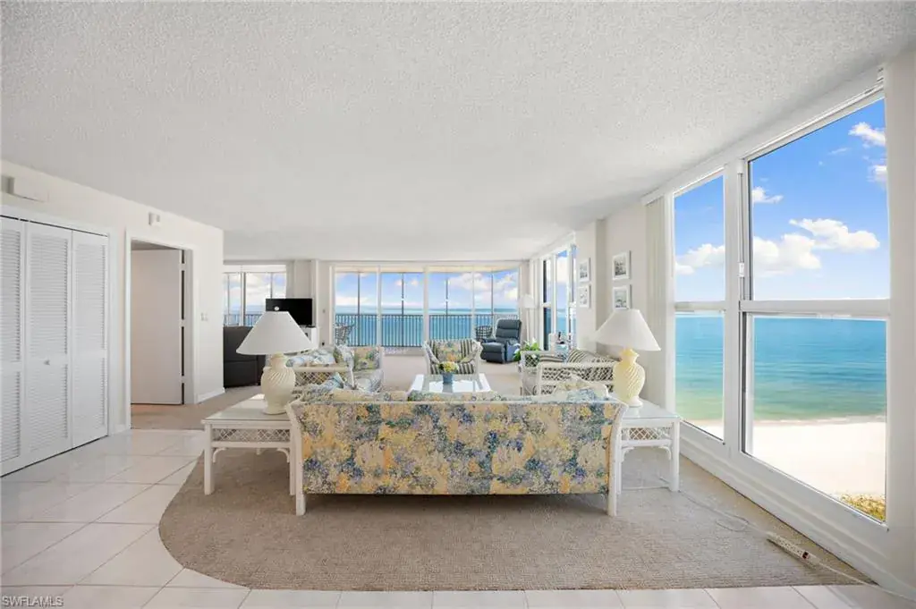 Incredible opportunity on Vanderbilt Beach priced below market for a quick sale. Best views on Vanderbilt Beach! This rarely available 11th-floor residence offers two bedrooms plus a den and three full bathrooms—a highly sought-after floor plan in this building. The moment you enter, you’re greeted with sweeping, unobstructed views of the Gulf of Mexico. The unit is open on three sides with floor-to-ceiling windows and doors that flood the space with natural light and offer breathtaking panoramas from Naples all the way north to Sanibel Island. Enjoy a large direct-beachfront lanai that spans the full width of the residence, along with a Gulf-front primary suite and a guest suite that also captures stunning water views. This is one of the most desirable stacks in the building and has not been available since 2021. The entire building is all impact glass and has undergone a complete update with new lobbies and redesigned grounds by MHK Architecture, complemented by professional interior design. The property is gated with smart-controlled access and sits on a quiet, private stretch of Vanderbilt Beach. Perfect as-is, ready to rent for strong income, or ready for a full renovation to create a true beachfront showpiece.