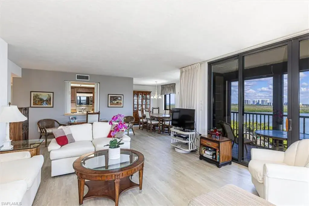 Introducing an Exceptional Gulf-View Residence at Vanderbilt Surf Colony?Experience refined coastal living in this rarely available 8th-floor retreat perfectly positioned along famed Vanderbilt Beach. This beautifully updated 2-bedroom, 2-bath condominium spans approximately 1,525 square feet and showcases sweeping, unobstructed panoramas of the Gulf of Mexico, Wiggins Pass, and the tranquil bay. Walls of windows invite in abundant natural light, creating a bright and inviting atmosphere throughout. The open-concept design blends the kitchen, dining, and living areas seamlessly—ideal for effortless entertaining. Both bedrooms serve as spacious suites, offering privacy, comfort, and stunning water views. Step onto your private lanai to enjoy nightly sunsets, views of passing sailboats, playful dolphins, and the natural beauty of the surrounding mangroves. This turnkey residence includes covered parking, electric storm shutters, and a ground-floor storage unit perfect for bikes and beach gear. Vanderbilt Surf Colony provides an amenity-rich lifestyle with a large resort-style pool, tennis, pickleball, bocce, kayak storage, and boat slips available for lease (please note that there is currently a waiting list)—perfect for BOATERS seeking direct, no-bridge access to the Gulf of Mexico. Located within a pristine gated enclave just moments from Vanderbilt Beach and Delnor-Wiggins Pass State Park, this home places you near premier Naples attractions including Mercato, fine dining, boutique shopping, and world-class entertainment. Opportunities like this are exceedingly rare—your Naples dream home with unmatched Gulf views and resort amenities is ready to welcome you. Move right in and start living the Vanderbilt Beach lifestyle today.