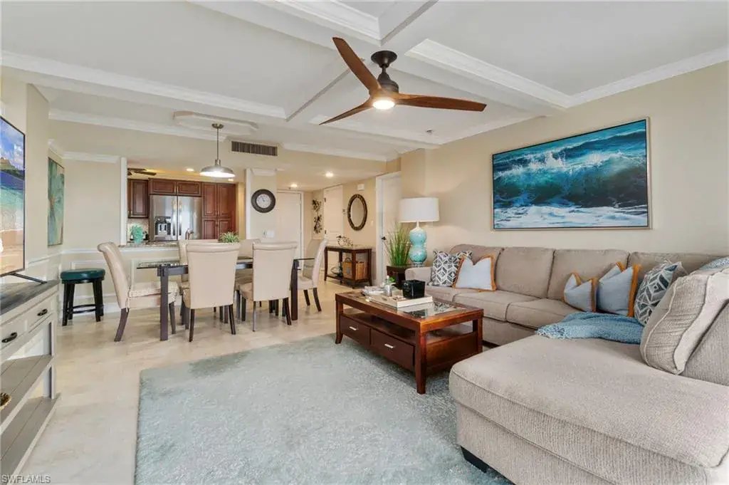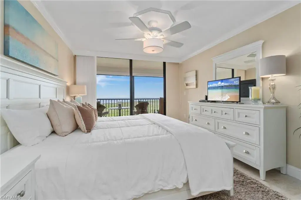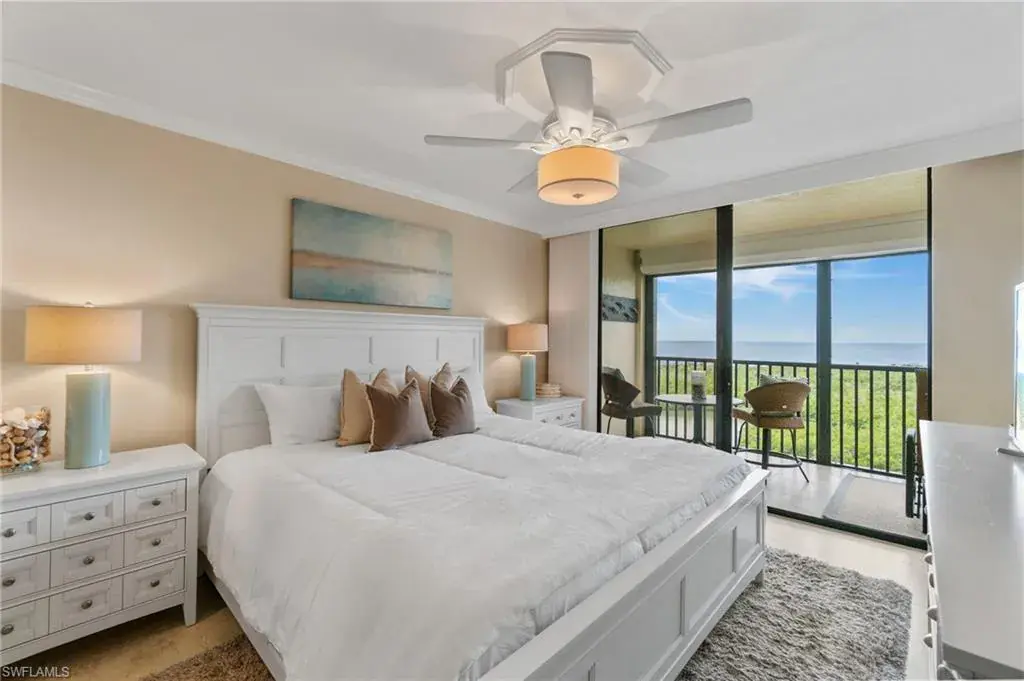 Just STEPS from Vanderbilt BEACH, this 10th-floor retreat soars above the coast, offering breathtaking sunsets that paint the sky in gold while the Gulf shimmers below. Move right in and fall in love with the serenity, the views, and the effortless beauty of this fully furnished, TURNKEY residence. This two-bedroom, two-bath home is a true coastal gem. Both bedrooms are master suites, providing privacy and comfort, while raised tray ceilings and elegant tile floors create a bright, open, and sophisticated living space. The lanai features electric hurricane shutters for convenience, and the property includes an assigned parking space and an extra storage room. A newer A/C and water heater add peace of mind. The building stands among the area’s highest elevations, with a newer seawall and NO HURRICANE DAMAGE from recent storms, a testament to its strength and design. Nestled within a gated community, this home offers the best of Naples living – steps from the crystal-blue Gulf waters, where everyday feels like vacation. Residents enjoy a large waterside pool and BBQ area, tennis, pickleball, and bocce courts, as well as boat docks and kayak leases, for endless days on the water.