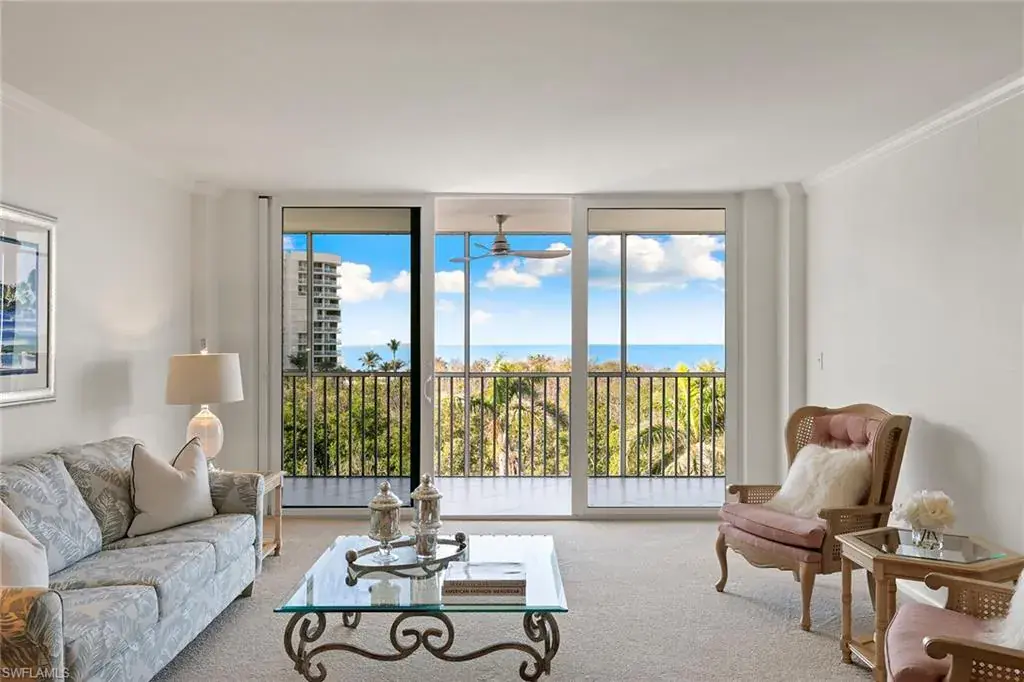 Gulf views! Three-bedroom, two-bath condominium in the gated neighborhood of Vanderbilt Towers at Vanderbilt Beach. Light and bright this unit has just been freshly painted with all-new carpeting. The spacious great room floor plan includes glass sliding doors that open to a large screened lanai, showcasing beautiful southwest gulf views. Residents enjoy access to a community pool, grill and picnic area, social room and laundry facilities. Boating enthusiasts will appreciate the on-site marina, where boat docks may be available for lease, offering direct gulf access with no bridges. A 30-day rental option up to 12 times per year. Enjoy nearby beach access, Delnor-Wiggins Pass State Park and Vanderbilt Beach, while The Ritz-Carlton, Pavilion and Mercato are just minutes away.