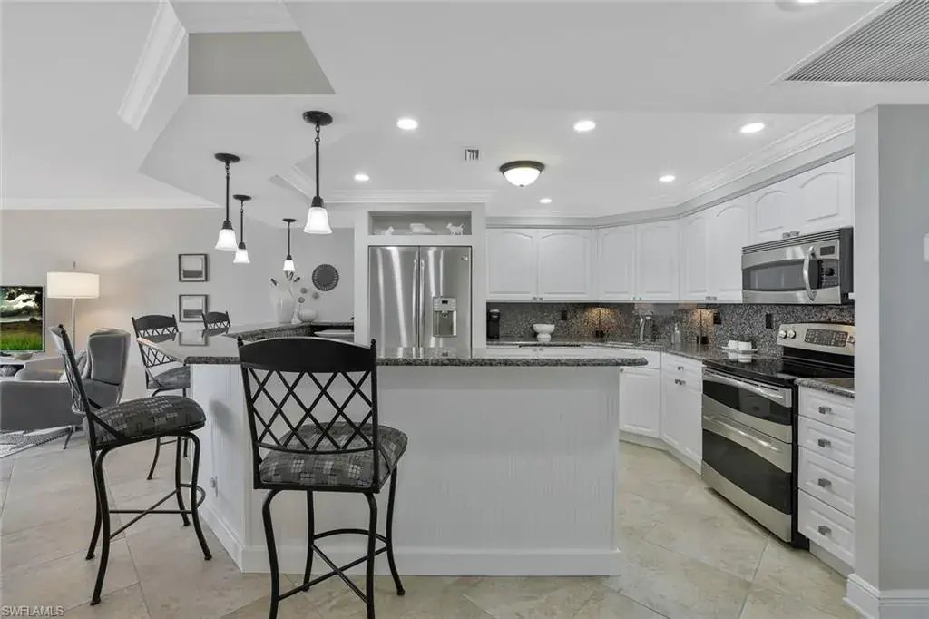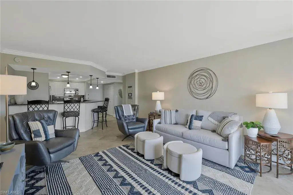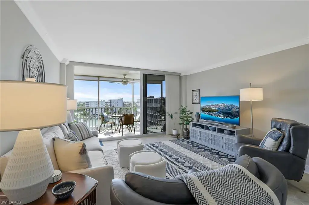 YOUR PENTHOUSE PARADISE awaits!! This 8th floor PENTHOUSE unit is offered FURNISHED and beautifully decorated. TOTALLY RENOVATED and updated throughout, even with IMPACT GLASS SLIDING DOORS! Kitchen and bathroom are tastefully remodeled, and the unit has been upgraded to tile floors throughout- no carpet to deal with! Water heater is BRAND NEW, and AC Compressor is only 2 years old! Upon walking in you will be impressed with the open space, as the kitchen has been opened up, so you can enjoy the beautiful unobstructed view of the marina, boats, and bay- all while preparing dinner! Walk out to your large, oversize lanai, and you will get the best of both worlds- a MARINA and BAY view directly ahead, and a GULF VIEW to your side- you pick! Enjoy your morning coffee watching the boats go by, or enjoy your evening wine watching the gorgeous evening sky over the GULF! Note that the 8th floor/top floor vantage point is a game changer! And for your beach gear? Large, private storage unit right on your own floor, giving you the extra space you need. Downstairs you can find a nicely remodeled community room, a secure lobby, and your very own on-site building manager! A beautiful private pool awaits right outside your lobby door- no sharing with other buildings! Jump in and take a quick dip, or take a short walk to the WORLD RENOWNED DELNOR WIGGINS STATE PARK BEACH! Are you a boater? Community BOAT SLIPS available for lease when available- and the big water is only minutes away by boat- couldn’t be easier. Want exclusive dining and shopping? No problem- ride your bike to eat at the Ritz Carlton, or the Mercato Center, lovingly called the “downtown of Uptown.” Tremendous rental potential and generous rental policy! Have it all, but don’t miss your chance!