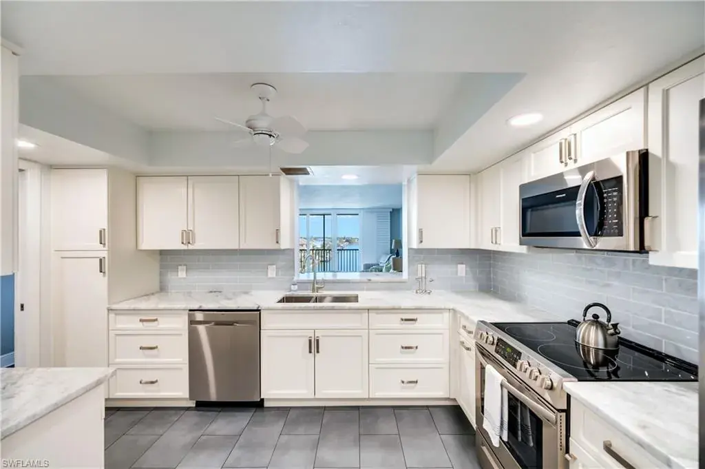 Experience the ultimate in coastal living with this fully renovated 2-bedroom, 2-bath unit on Gulfshore Dr., offering breathtaking bay views. This pristine home is move-in ready and comes turnkey furnished—just bring your suitcase and start enjoying the season! Enjoy private beach access right across the street, or lease a boat dock with indirect Gulf access for endless water adventures. Relax by the beautiful bayside pool, complete with a Tiki Hut, grills, and a cozy firepit area—perfect for entertaining. Additional amenities include pickleball and tennis courts, an exercise room, and inviting community areas. With deeded covered parking, convenience is guaranteed. This immaculate unit offers a seamless blend of luxury and convenience. Schedule your showing today and step into your dream coastal retreat!