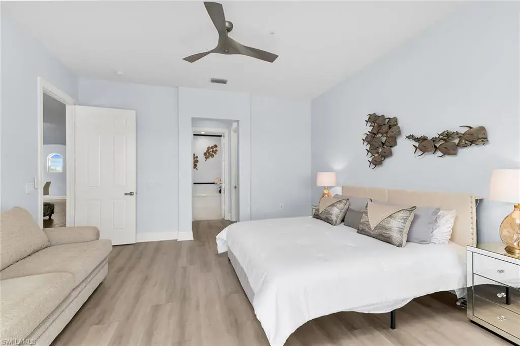 Southern exposure furnished second-floor, top-floor coach home with a large lanai and lake view. Private elevator-ready with a living room, dining room, kitchen opening into the family room, three bedrooms, three baths and a two-car garage. Remote control window shades and sliding glass door blinds, and plantation shutters. The primary bedroom has two walk-in closets, dual sinks, a tub and shower. On a quiet street in the Village of Varenna, close to the village pool. Enjoy a luxurious lifestyle in the amenity-rich Fiddler’s Creek enhanced by a 54,000-square-foot club and spa, fitness center with a full-service spa, steam and sauna, three swimming pools, two championship golf courses, six tennis courts with 16 competitive tennis teams, four pickleball courts, a bocce court, fine and casual dining, full calendar of social activities and miles of biking, running and recreational paths. Optional golf, beach club and marina memberships available. Fiddler’s Creek is close to the Marco Island Executive Airport, beaches, shopping, restaurants, boating and quick access to Naples 5th Avenue and Naples Airport.