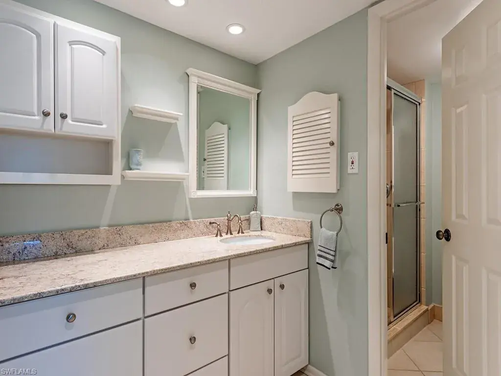 This light and bright condo with a spacious open floor plan is being offered furnished! Decorated with a costal flair with updated bathrooms, open kitchen, high impact windows and electric hurricane shutter. Unique opportunity to own a 4th Floor condo with a 17′ screened lanai in this respected secure Park Shore building. Venetian Bayview has beautiful club house with party room, fitness room, game room, library and full kitchen. There is a large lake view pool, pickleball courts, tennis court and grilling area. The lovely spacious club house was all recently remodeled. The condo includes laundry room off the lanai and air-conditioned storage. Venetian Bayview is located a short stroll from Venetian Village with fine dining and shopping and the Park Shore private residence beach. Location, Beauty and Value!