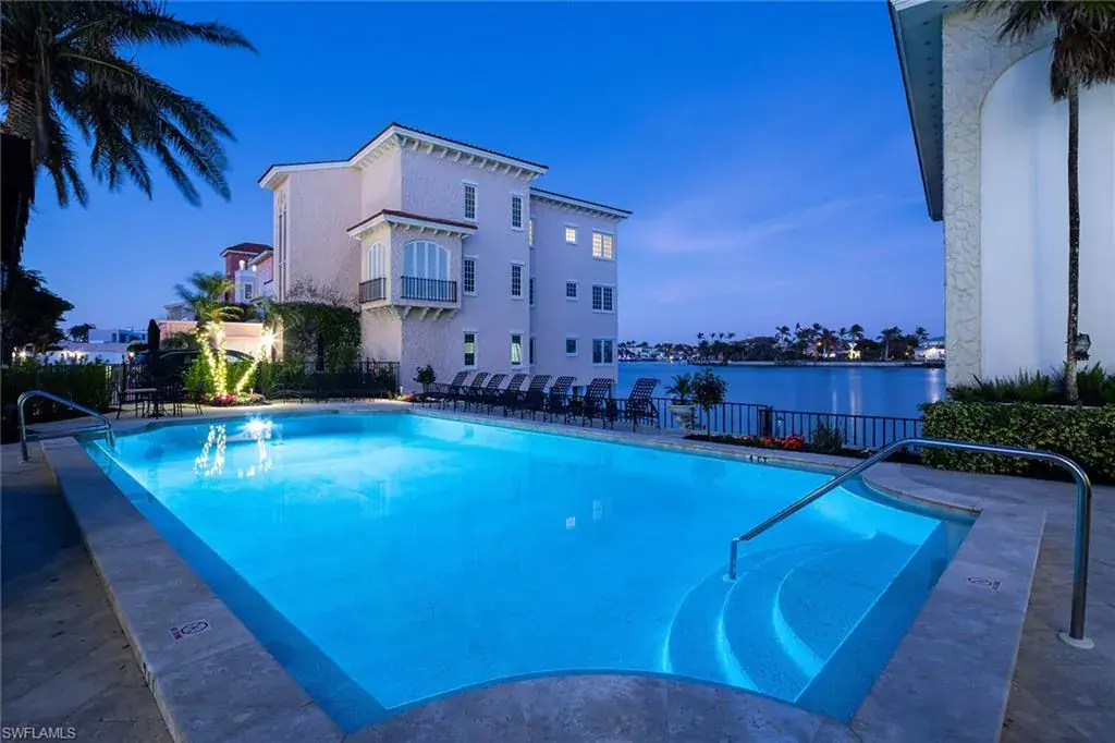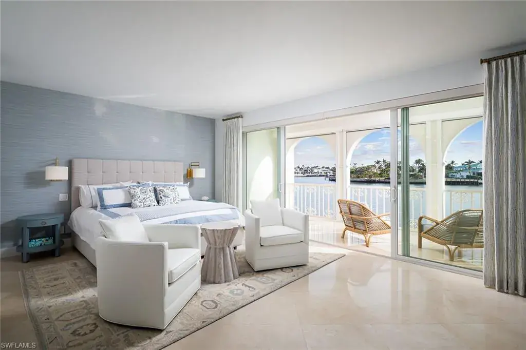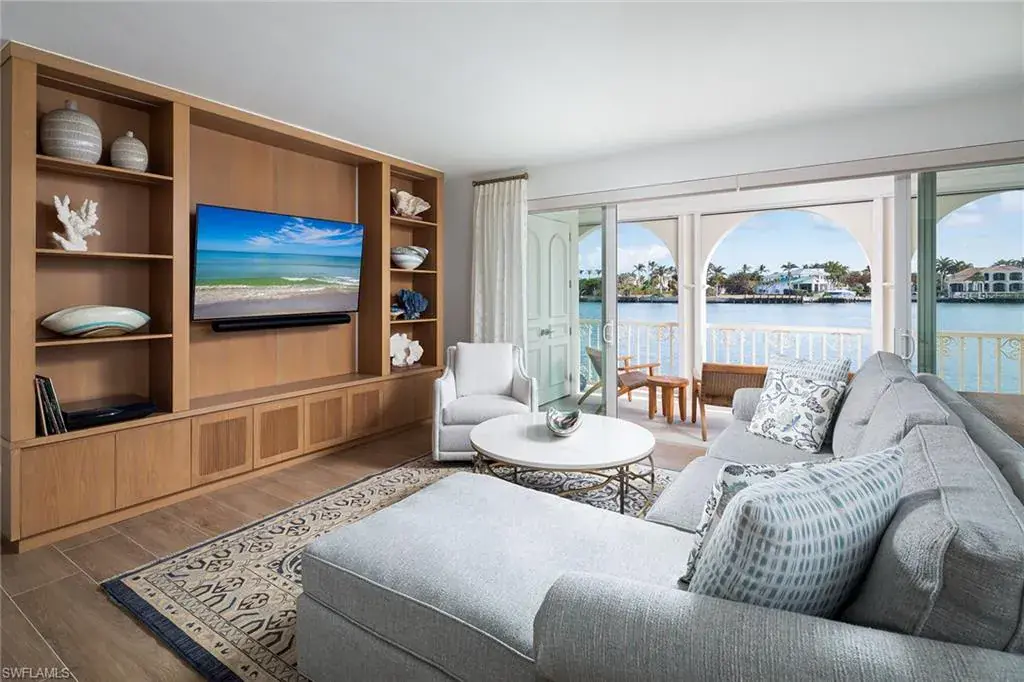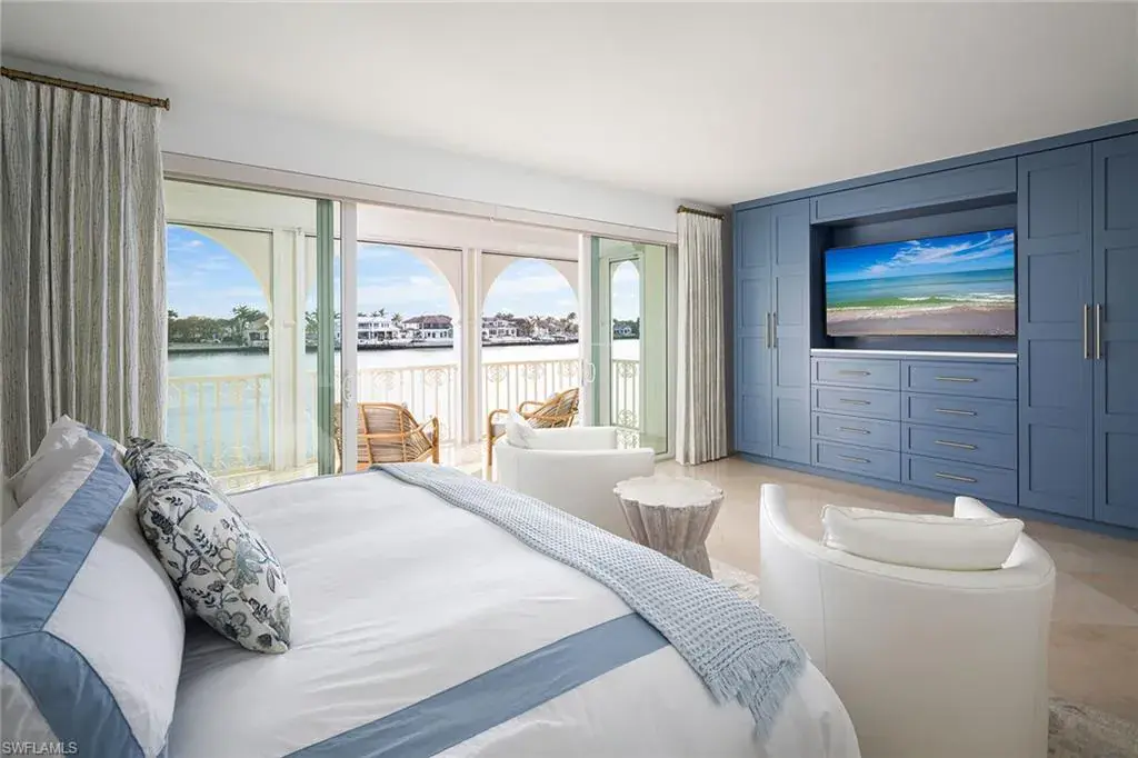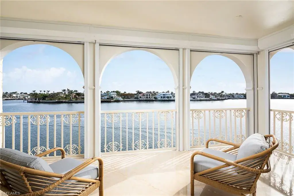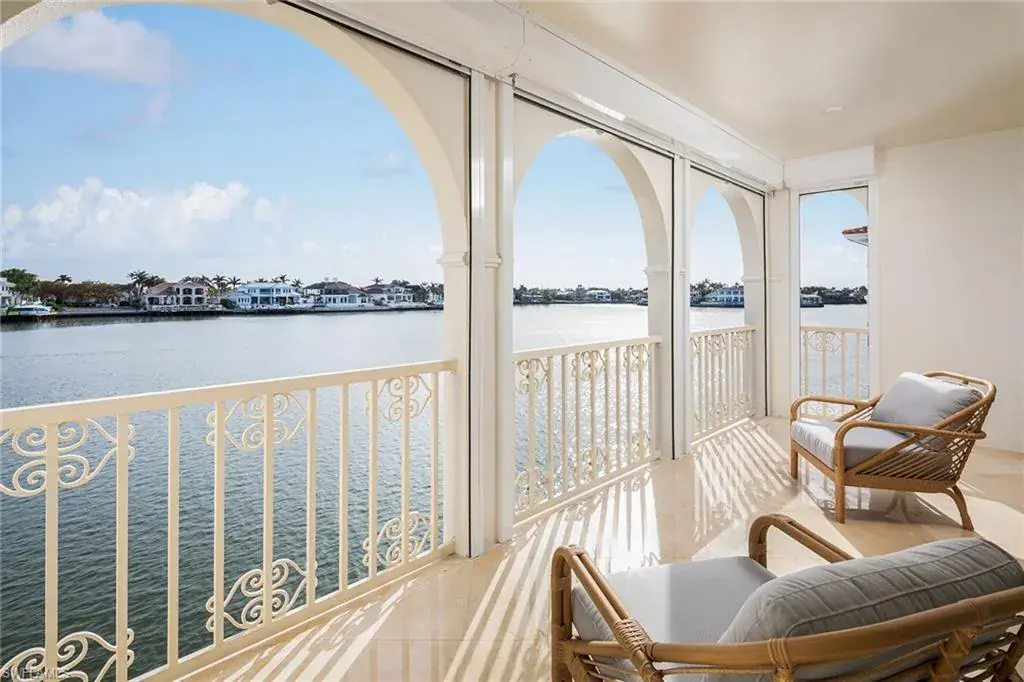 Indulge in the ultimate waterfront lifestyle at Venetian Villas, a desired bayfront enclave on prestigious Gulf Shore Boulevard North. This move-in-ready three-bedroom, three-bath villa offers sweeping views of Doctors Bay and exquisite designer finishes throughout. The open floor plan features a spacious great room with new wide plank wood-look tile flooring, custom built-ins and a stylish dry bar with a beverage refrigerator, ideal for entertaining. Light streams through impact glass sliders that open to an oversized balcony, ideal for taking in the serene bay views. The refreshed gourmet kitchen boasts quartzite countertops, custom cabinetry and top-of-the-line appliances, including Wolf, Sub-Zero and Miele. The primary suite is a private retreat with its waterfront balcony, custom built-ins, elegant wall treatments and a newly renovated spa-like bath featuring dual sinks, a soaking tub and a large glass-enclosed shower. Two additional bedrooms and updated baths complete this stunning home. New air-conditioning units were installed in 2023. Residents of Venetian Villas enjoy a waterfront pool, private boat slips available for a nominal fee and beach access. This pet-friendly, gated community features only 32 unique villas, an on-site manager, and proximity to Venetian Village’s world-class dining and shopping. Don’t miss your chance to own this slice of paradise and experience the best of Naples living!