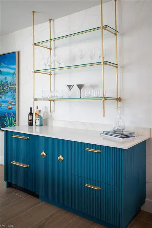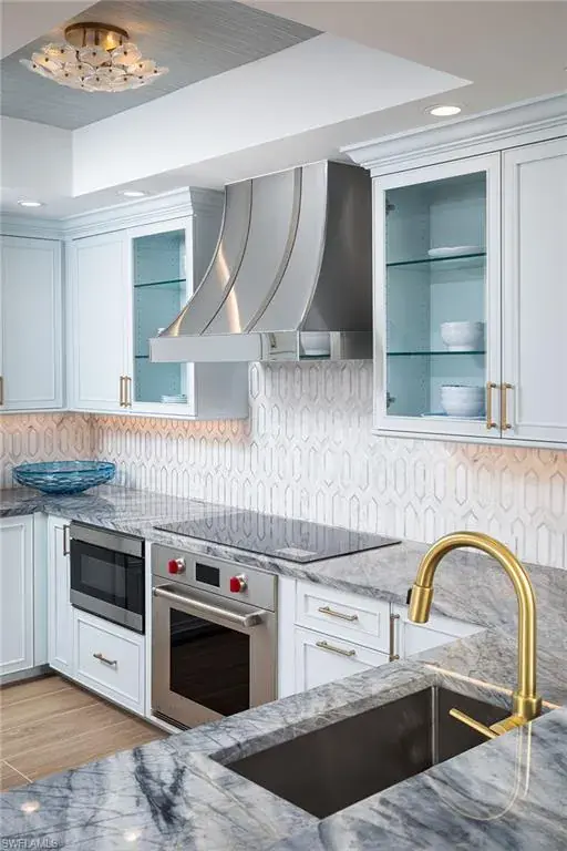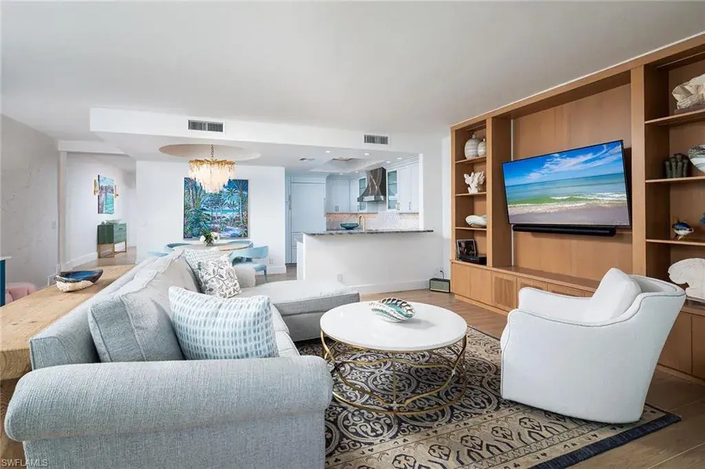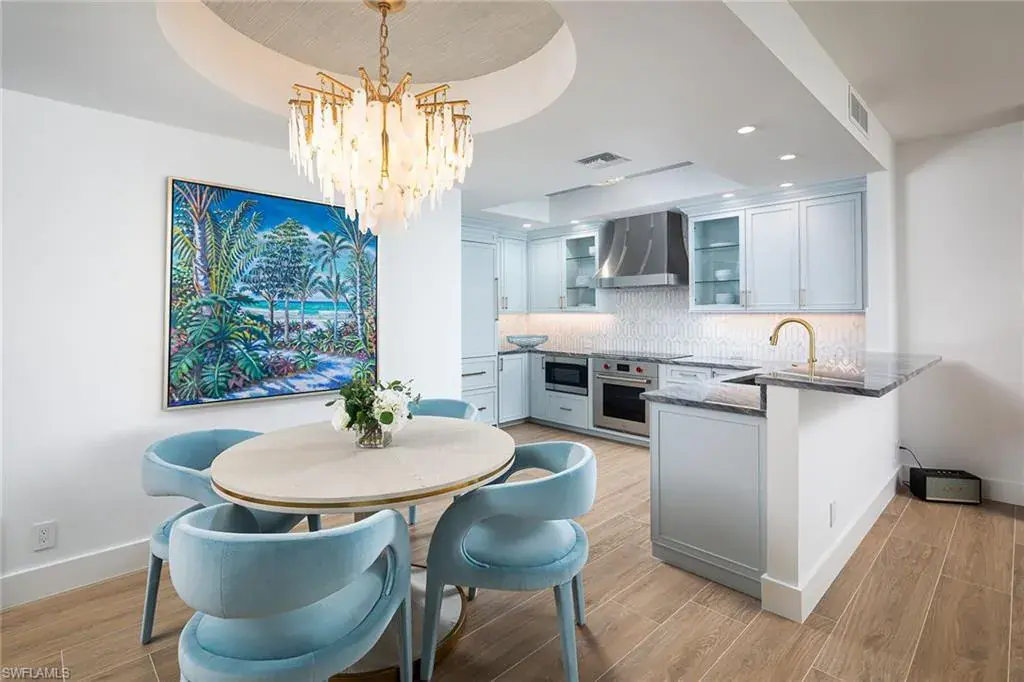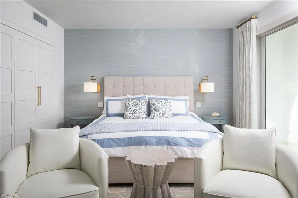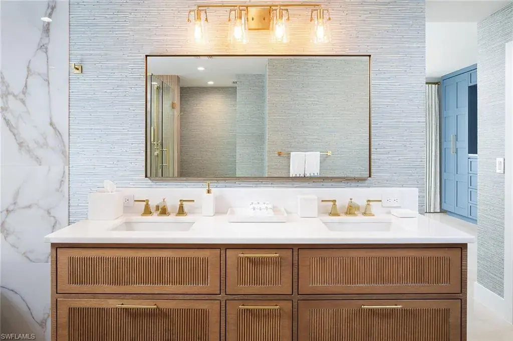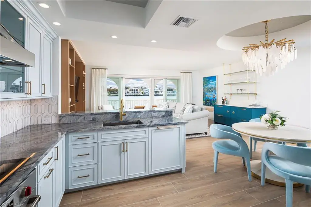 Indulge in the ultimate waterfront lifestyle at Venetian Villas, a desired bayfront enclave on prestigious Gulf Shore Boulevard North. This move-in-ready three-bedroom, three-bath villa offers sweeping views of Doctors Bay and exquisite designer finishes throughout. The open floor plan features a spacious great room with new wide plank wood-look tile flooring, custom built-ins and a stylish dry bar with a beverage refrigerator, ideal for entertaining. Light streams through impact glass sliders that open to an oversized balcony, ideal for taking in the serene bay views. The refreshed gourmet kitchen boasts quartzite countertops, custom cabinetry and top-of-the-line appliances, including Wolf, Sub-Zero and Miele. The primary suite is a private retreat with its waterfront balcony, custom built-ins, elegant wall treatments and a newly renovated spa-like bath featuring dual sinks, a soaking tub and a large glass-enclosed shower. Two additional bedrooms and updated baths complete this stunning home. New air-conditioning units were installed in 2023. Residents of Venetian Villas enjoy a waterfront pool, private boat slips available for a nominal fee and beach access. This pet-friendly, gated community features only 32 unique villas, an on-site manager, and proximity to Venetian Village’s world-class dining and shopping. Don’t miss your chance to own this slice of paradise and experience the best of Naples living!