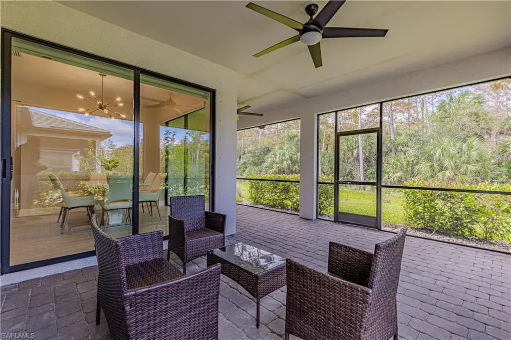 Discover Ventana Pointe, an exclusive enclave of just 77 homesites with low HOA fees, offering a perfect blend of comfort and convenience for both empty-nesters and families. As one of the rare natural gas communities in North Naples, Ventana Pointe offers efficient, modern living in an intimate setting. The Mystique floor plan showcases an inviting open-concept design with 3 spacious bedrooms, a versatile den, and 3 full baths, including a private ensuite in one of the guest bedrooms. The gourmet kitchen is equipped with stainless steel appliances, elegant quartz countertops, and smart home technology for effortless living. Enjoy your private backyard in your large, covered lanai, perfect for entertaining or personalizing with an optional private pool. Residents also have access to the community pool and cabana for additional relaxation and socializing. Ventana Pointe is in a top-rated school district, and is just 10 miles from the stunning Gulf beaches, and less than 10 minutes from premier shopping and dining, including the new Founders Sqaure. It offers luxurious living, rare natural gas amenities, and everyday convenience in sought-after North Naples.