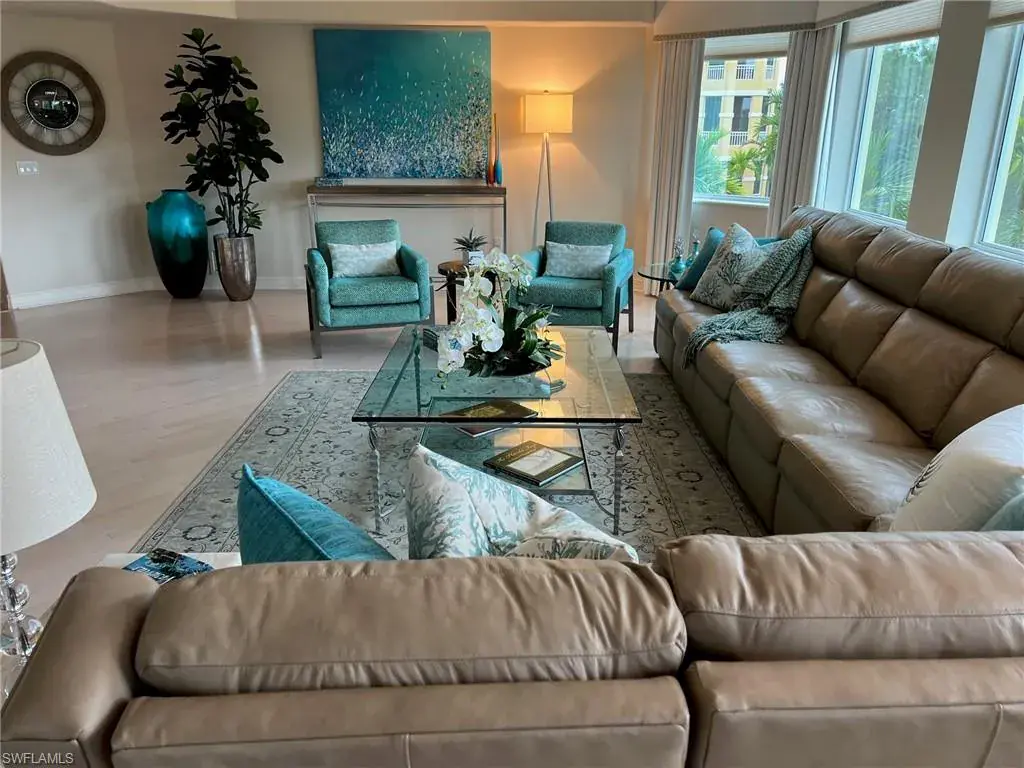 This beautiful end/corner unit is filled with an abundance of natural light and nature views that epitomize the Naples lifestyle! This well-maintained Marbella 3BR/3.5BA floorplan provides private ensuite baths in each bedroom, & a powder room for guests. Main lanai accessible from the Great Room, Dining Room and Main Bedroom. 2 guest suites share a 2nd private lanai overlooking the golf course. Zoned HVAC has 2 units, (2019), & water heater (2019) is oversized at 80 gallons! Great Room and Dining Room flooring is whitewashed blond hardwood, with carpet in bedrooms & tile in all other rooms & on the lanais. Covered under-building parking includes assigned parking space #1, & private storage unit #21 for bikes, golf clubs, beach chairs, etc. Tiburon’s location is ideal, with stores, restaurants & shopping at Mercato just a short drive away…the beach is approx. 2 miles away! Building roof is 2 years old, with all windows & sliders replaced in 2021. Washer/dryer/refrigerator new in 2019, with all other appliances new & never used! Radon mitigation installed 2018. Medallion membership available for purchase for the ultimate in golf privileges & enjoyment! Don’t wait—call to see now!