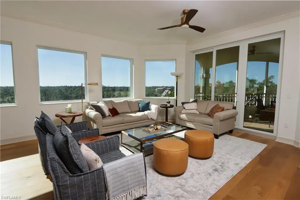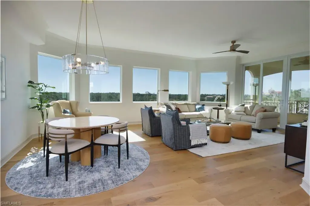 Enjoy luxury resort living with this turnkey, fully furnished 5th floor penthouse. The wrap around lanai offers spectacular unobstructed SW views. The spacious Marbella floorplan includes a den, 3 bedrooms (each with its own private ensuite bath) and a powder room for guests. The primary suite includes a jetted tub, water closet, separate shower, walk-in closet and entrance to the main lanai. The large Great Room features recently updated wide plank oak floors and can accommodate a lounging and dining/game area, which flows to a separate dining room and kitchen with breakfast bar seating. Natural light flows in through the updated impact resistant sliding doors and windows (2020). The building roof was replaced in 2020. The unit includes 1 parking space in the covered, secured garage and a private storage room. Guest parking available. Ventanas offers a community pool, spa and BBQ area and allows 2 pets with no weight limit. The sale includes Signature Membership to The Ritz-Carlton Tiburon Golf Club ($25K value), which offers golf privileges, fitness club, beach shuttle and access to the Ritz-Carlton swimming pool complex (3 slides, lazy river, kids swim area).