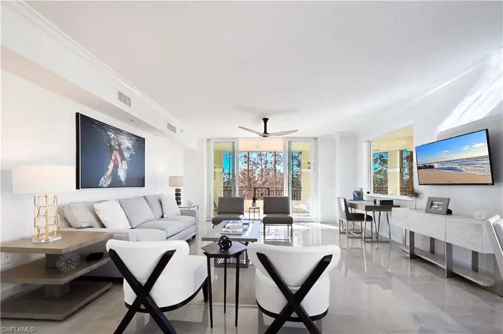 Just Reduced for a SALE NOW.! Owners are ready to Sell as they’ve found another property.. INCREDIBLE NEW RENOVATION of this special corner unit with TWO wrap around screened balconies, floor to ceiling IMPACT WINDOWS & sliding doors and elegant neutral porcelain tile flooring throughout living areas & bedrooms….. 2 oversize bedrooms to include a guest bedroom suite with a private screened balcony and golf course views. The grand Master suite features 2 walk-in closets, sitting area and access to the wrap around screened balcony with golf course views. A large open kitchen features a picture window, stainless appliances, pantry and bar stool seating at the large breakfast bar. The laundry room is complete with a sink and plenty of counter space PLUS this corner unit offers the additional half bath – powder room.