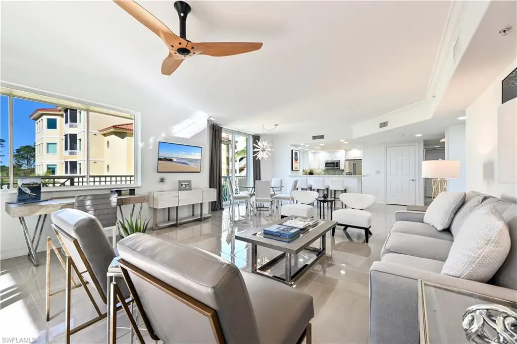 Ventanas features a golf front lap pool, spa, gas grills & cabana dining area on the oversize brick paver pool deck. The roofs were NEW in 2020 & the building parking garage is attached with an option to lease additional spaces, if desired.. A membership purchase is not mandatory. We do have golf memberships available IMMEDIATELY though!!