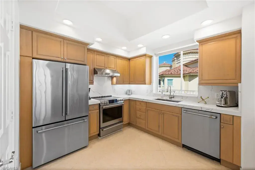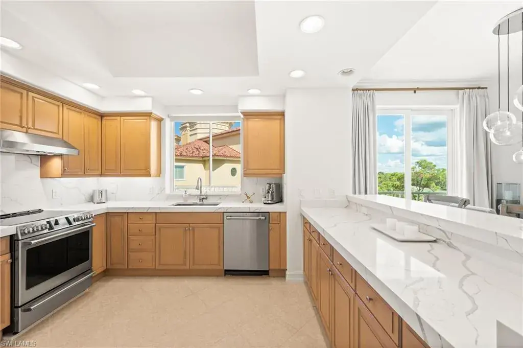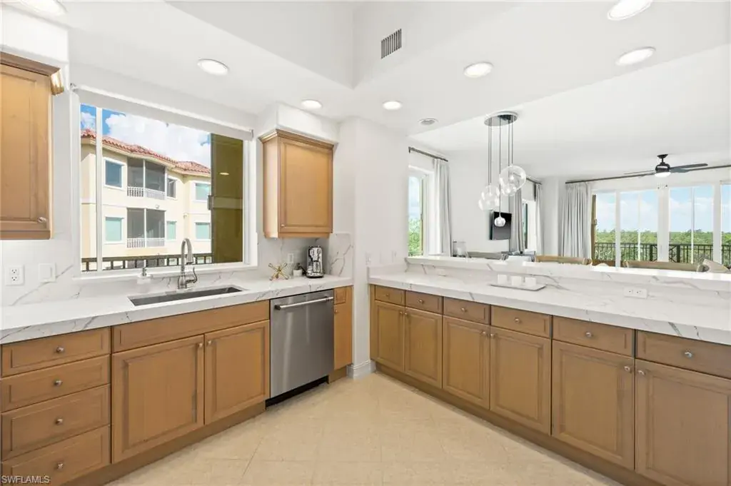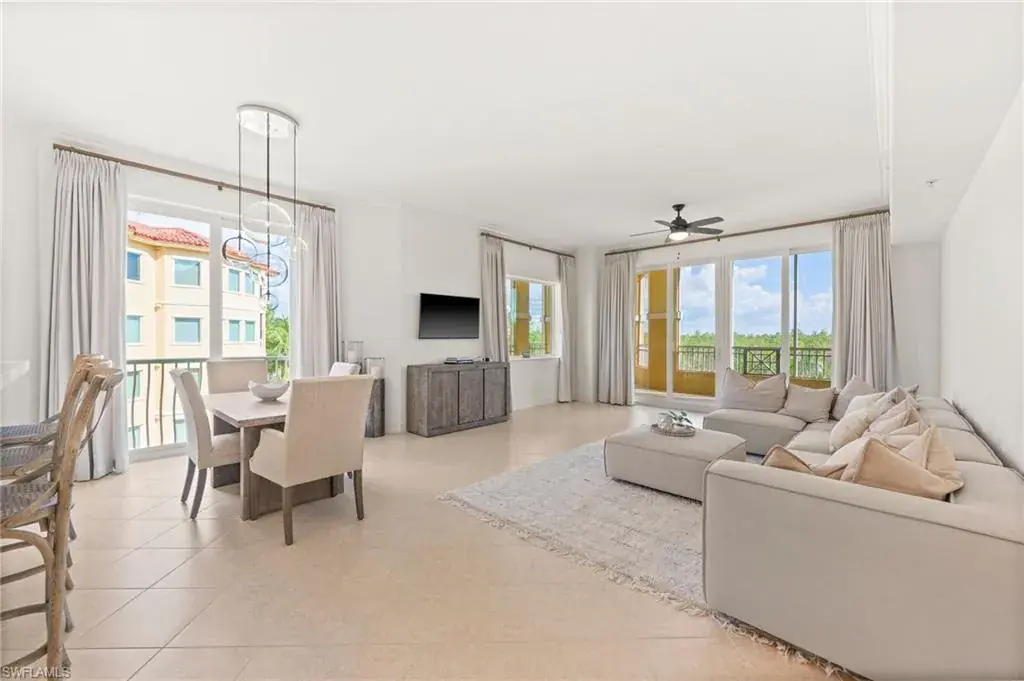 Looking for the perfect condo at Florida’s Number 1-ranked Golf Resort? Look no further! This stunning top-floor end unit offers breathtaking, panoramic views from sunrise to sunset over the renowned Greg Norman-designed Championship Golf Course. Upon entering this bright and airy condo, you’re welcomed by soaring 10’5″ ceilings exclusive only to the top floors, and an abundance of natural light. This property is WCI’s former model home. The beautifully renovated kitchen features sleek quartz countertops and brand-new appliances. Recent upgrades also include fresh paint throughout, new hardwood flooring in the bedrooms, a new water heater, impact-resistant glass sliders and windows, and a new roof. Relax on the spacious wraparound lanai, where you can take in sweeping views of the preserve and golf course, or enjoy a morning coffee on the second balcony off the guest bedroom. Ventanas is more than just a place to live, it’s a Lifestyle! This gated community offers resort-style amenities, featuring a tropical pool oasis complete with a lap pool, spa, gas grills, and a charming cabana. Stroll along beautifully palm-lined streets, perfect for a relaxing walk. The community is also pet-friendly. Residents enjoy secure, under-building parking along with private storage. Golf and Social Memberships are available immediately—no waitlist! Membership is optional, so you can choose the perfect lifestyle that suits you best. Ideally located within minutes to Naples finest restaurants, shops, Mercato, and the Gulf of Mexico!