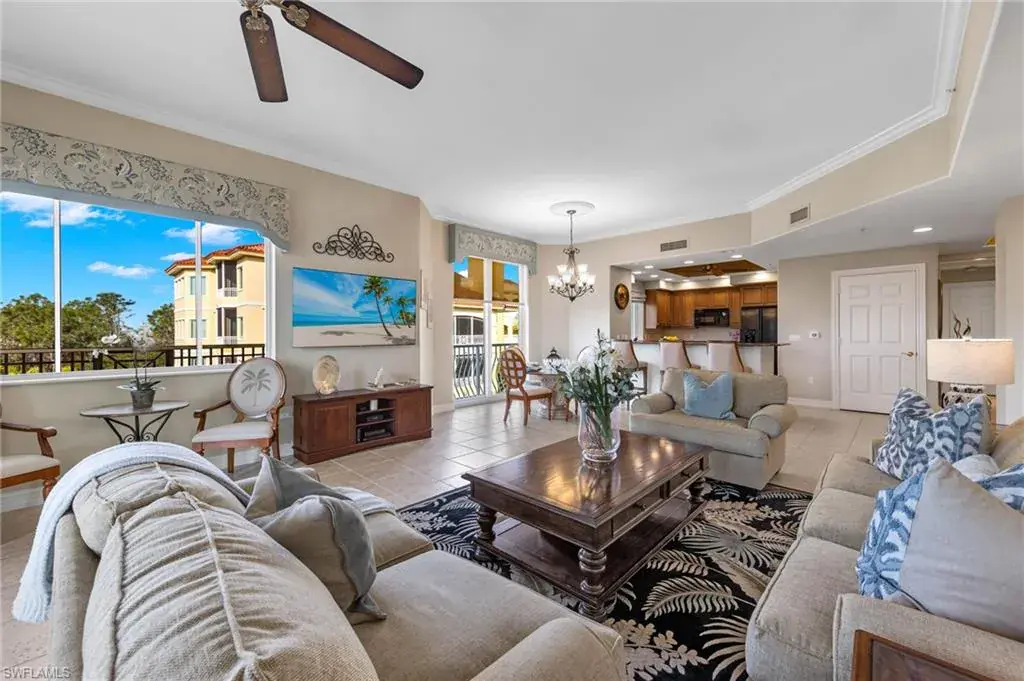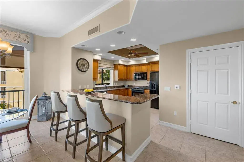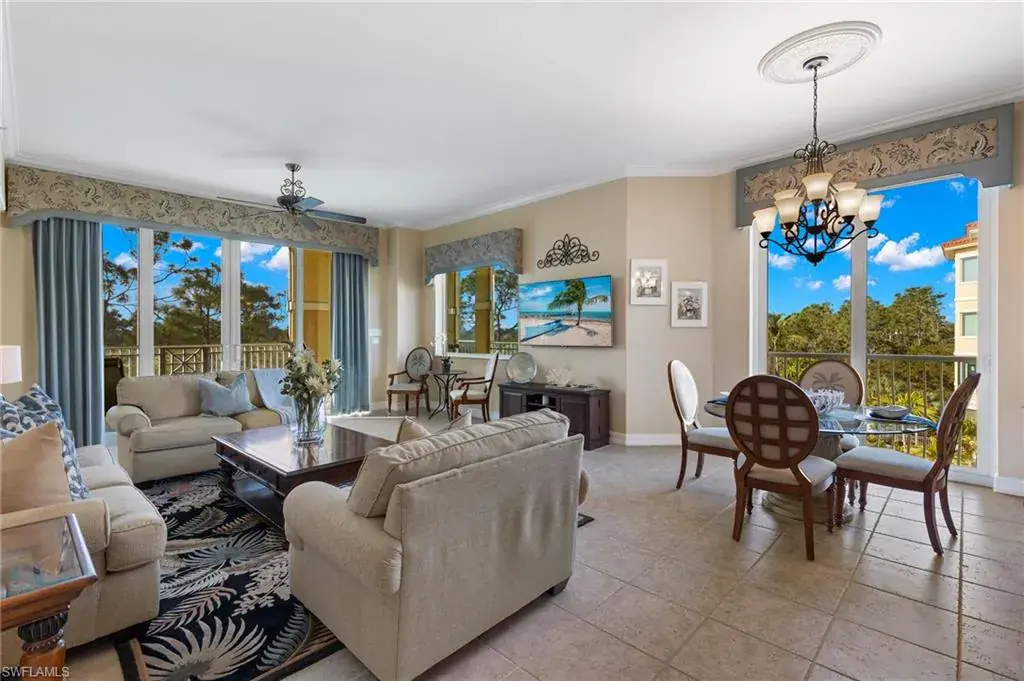 HIGH CEILINGS AND SUNSET VIEWS!!! METICULOUSLY MAINTAINED!!! IMMEDIATE GOLF IS AVAILABLE FOR PURCHASE. SELLER READY TO SELL!! Enjoy a luxury resort lifestyle unique to the The Ritz-Carlton Naples, Tiburon with this beautiful two-bedroom, 2.5-bathroom condo in the sought-after Ventanas neighborhood. This immaculate property features extra high ceilings, remote control shades in the living area, and southwestern exposure for beautiful all day sun and sunsets. The wraparound lanai offers partial views of the golf course and a serene preserve. The open floor plan is thoughtfully designed, boasting a dining room, breakfast bar, spacious kitchen and split bedrooms with newer flooring. Offered partially furnished, this condo is the epitome of luxury living with all the amenities you could want in a resort lifestyle. Tiburon boasts 36 holes of Greg Norman-designed championship golf, concierge services, restaurants, fitness center, spa, tennis and private beach shuttle. Located close to beaches, world-class shopping, dining, and all that North Naples has to offer. Golf memberships are immediately available, but not required to live in the community.
