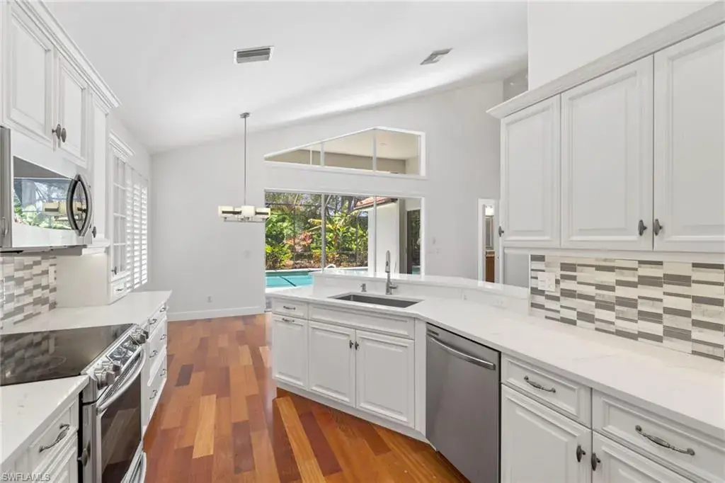 Gorgeous pool home in sought after Ventura in Pelican Marsh! This beautiful 3 bedroom plus den / 3 bath Spinnaker Model has been completely updated…New A/C, new roof, freshly painted interior and exterior, remodeled kitchen and baths, resurfaced pool deck in 2019, new hot water heater 2023, & newer pool heater 2019. Lovely kitchen with stainless steel appliances, Carerra Marble bathrooms, private/heated pool and 2 car attached garage make this home a dream! Pelican Marsh is a centrally located community minutes from the Mercato Shoppes that boasts a wide variety of amenities to enjoy including; fitness facility, tennis, bocce, pickle ball, gym, play area and restaurant. The Pelican Marsh Golf Club has optional social, full golf, and dining memberships available. This is truly a must see home.