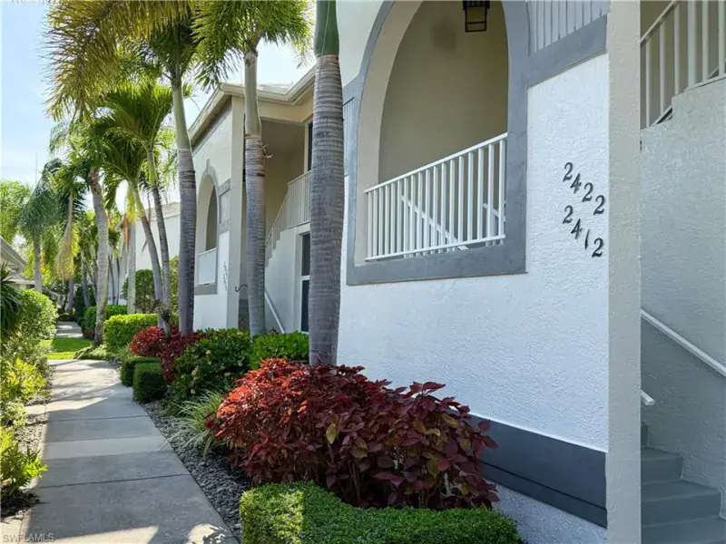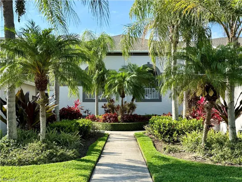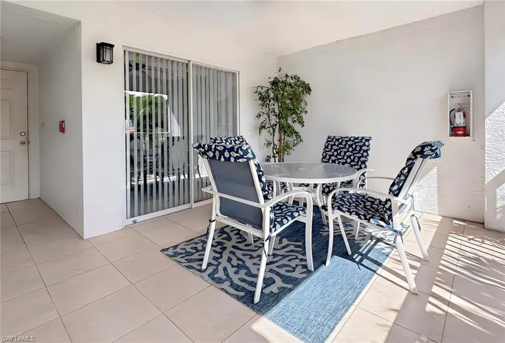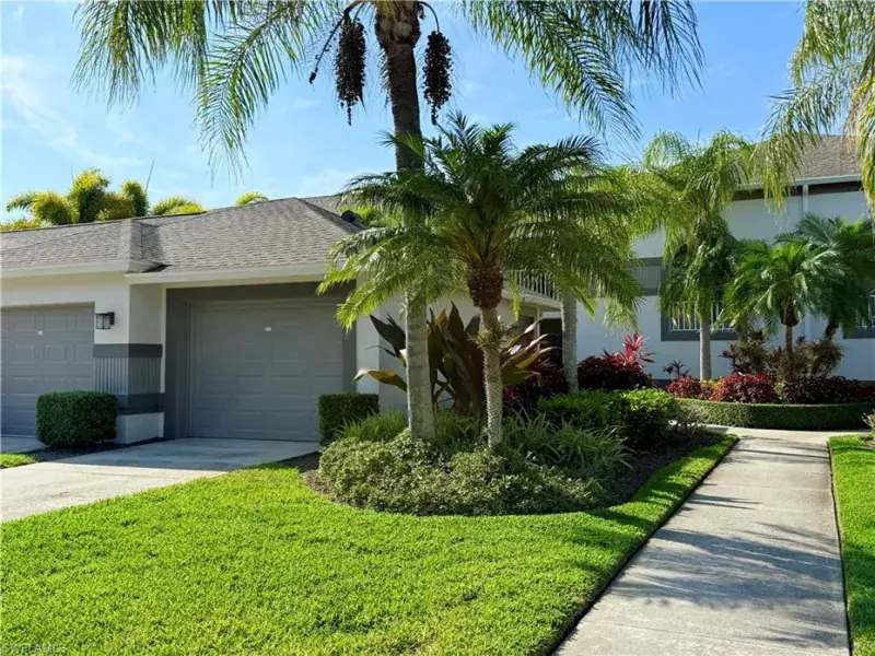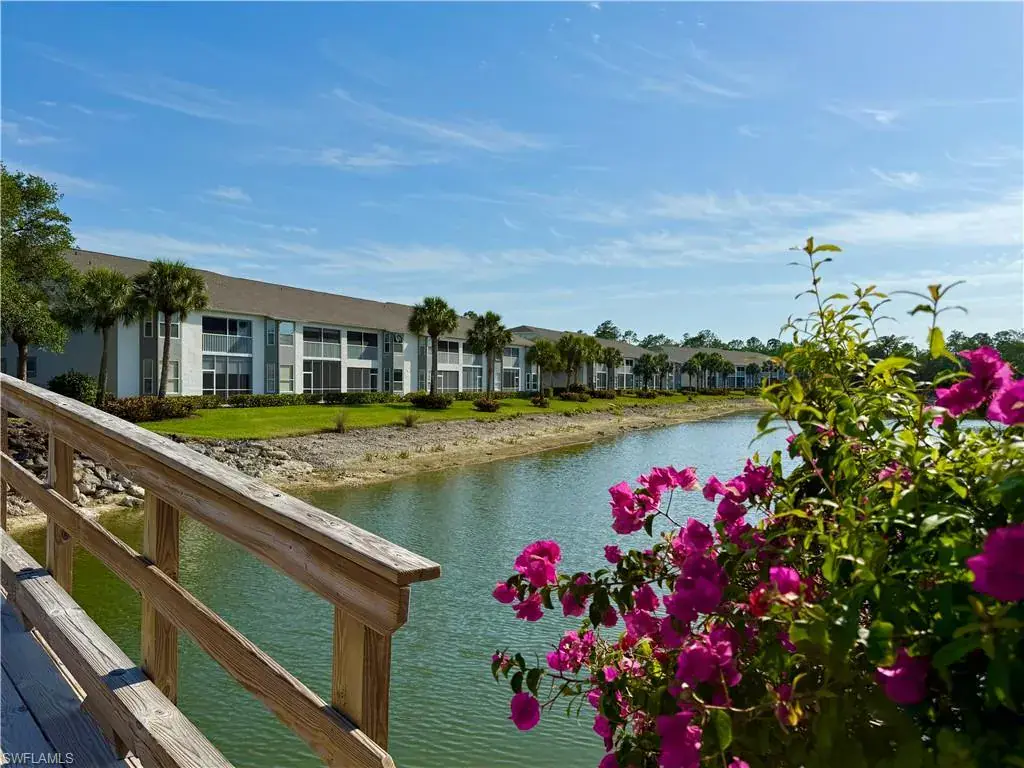 AMAZING PRICE on a 2 BR +DEN Veranda w/ Garage located in Naples Heritage Golf and Country Club. Even if you choose to renovate so that everything is to your exact style you will be ahead of the game with this investment. Golf membership included. Condo is on 2nd floor of 2-story building (no one living above). This second floor condo has a gorgeous view of lake, golf course and preserves. Inside you will find vaulted ceilings that provide an open spacious feel. Windows have plantation shutters. Kitchen with granite countertops, double pantry and eat in. Dining room is open to living area with built in bar. Den off main living room closes off with pocket doors and is multi-functional – use as den, office or 3rd bedroom when needed! Spacious primary bedroom with bay window and 2 walk in closets. Primary bath with granite countertops and updated walk in shower with frameless glass door. Guest bedroom is split from Primary bedroom for privacy. Guest bath has granite countertop vanity. Front and back of condo have screened covered lanais with tile floors. Backside of home is protected with electric hurricane shutters. Enjoying your own piece of paradise and all the Naples Heritage has to offer. Naples Heritage is a beautifully landscaped, gated, bundled golf community. Enjoy the NH lifestyle- 18 hole golf course, putting green, driving range, renovated clubhouse w/pro shop, resort style pool, tennis courts, pickleball courts, bocce, fitness center, poolside cabana & bar. Just minutes from downtown Naples and pristine beaches.