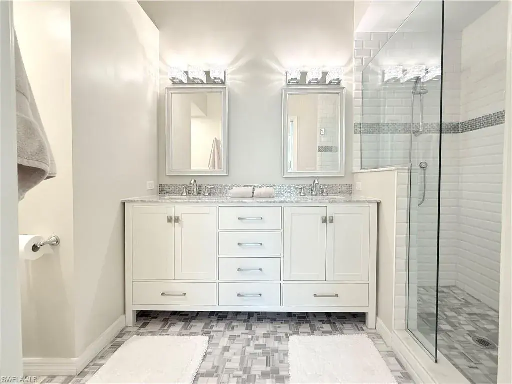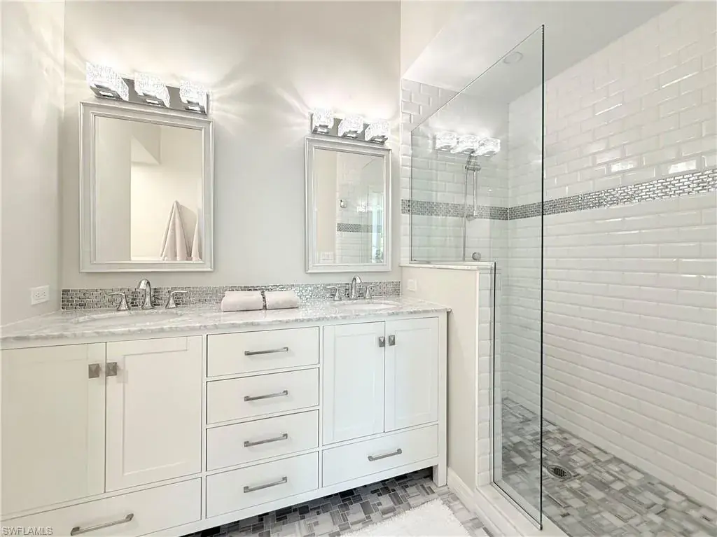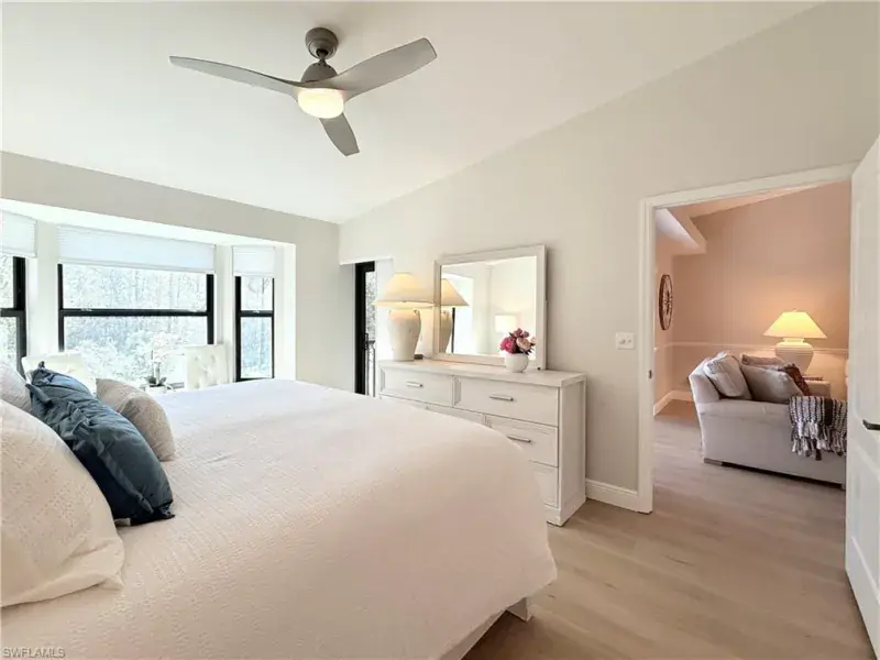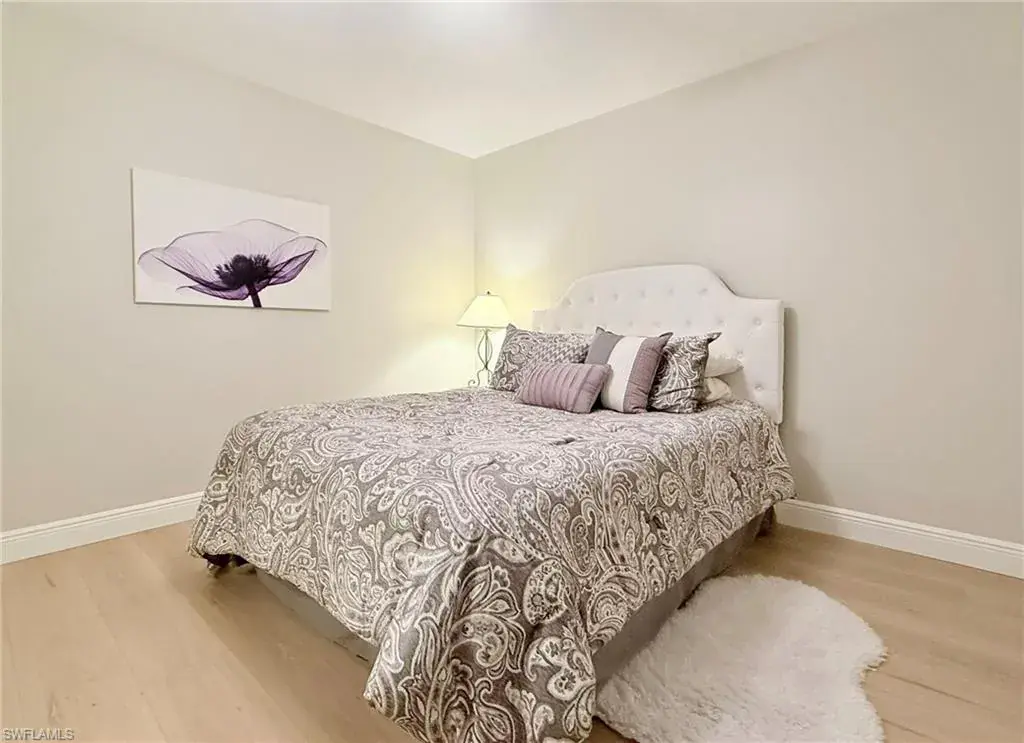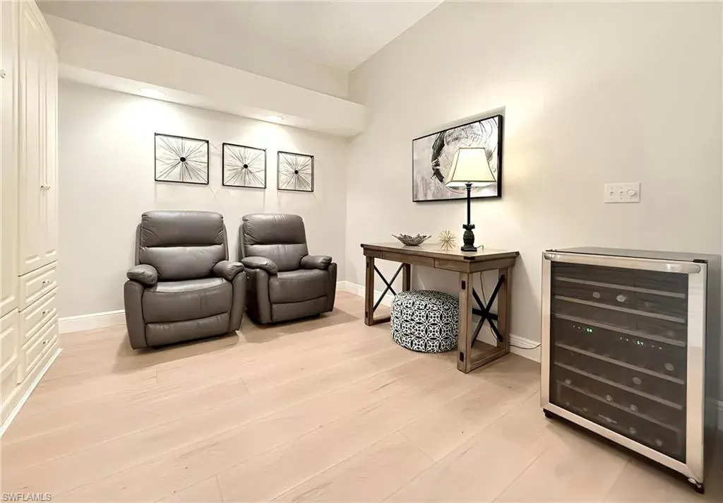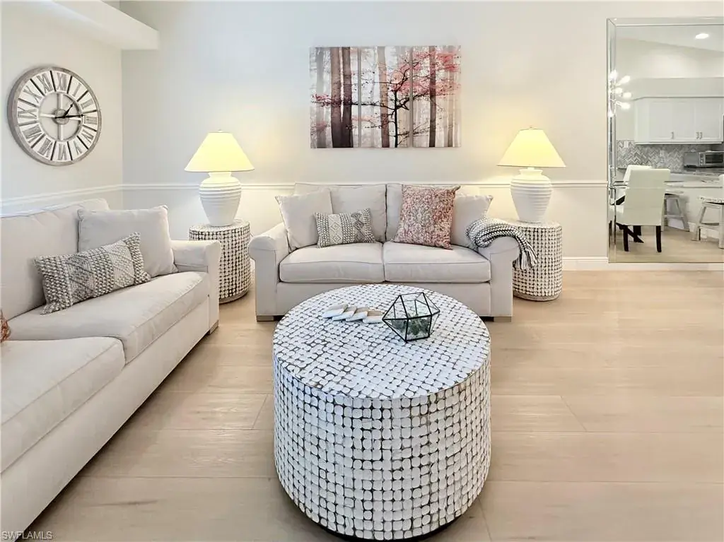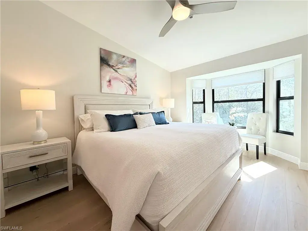 Absolutely gorgeous move in ready Veranda located in Naples Heritage Golf and Country Club!!! Unbelievable price – turnkey!!! 2 BR +DEN / 2 Bath Condo with Garage. This bright & beautifully furnished condo is ready for new owners. Situated on a quiet street within walking distance to clubhouse. You’ll fall in love immediately upon entry. Luxury vinyl plank flooring runs throughout condo with vaulted ceilings in main living area & primary BR. Interior is light and bright. Kitchen updates include white shaker cabinets, quartz countertops, custom tile backsplash, designer lighting & SS appliances. Kitchen has breakfast/eat in area with double pantry (shaker doors on pantries match cabinetry). Dining room and living room are open concept with bar. Den is located just off main living area. Pocket doors allow den to be closed off for privacy and used as 3rd BR (has Murphy Bed) or home office when needed. Spacious primary BR w/ 2 walk-in closets & bay window with sitting area. Primary bath has been entirely remodeled with top finishes. Primary BR split from guest BR for added privacy. Pocket door allows homeowner to create private bedroom and bath suite for guest. Enjoy relaxing and entertaining on both front and back screened lanais. Sliders from living room exit onto back lanai with view of golf and preserve. Sliders from breakfast/eat in exit to front lanai with view of courtyard. NEW HVAC, PGT IMPACT WINDOWS and SLIDERS, NEW LANAIS front and back. This is a MUST SEE Condo at a don’t miss out of price. Naples Heritage is bundle golf community with 18 hole golf course, driving range, putting green, resort style pool w/ cabana, tennis pavilion, fitness center, pickleball courts & bocce ball. Just minutes to downtown Naples and beaches. Come live the Naples Heritage lifestyle.