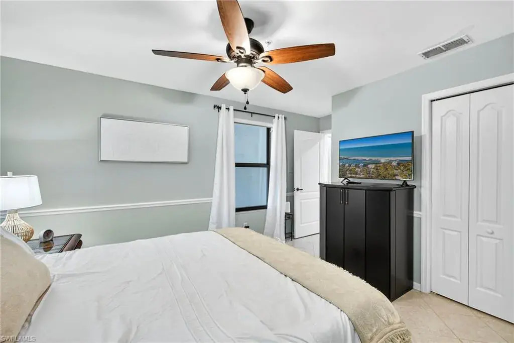 Additional highlights include tile flooring throughout, fresh paint, updated finishes, and an included garage. The building has been recently upgraded with new impact doors and windows, exterior paint, new screens, and bronze railings.