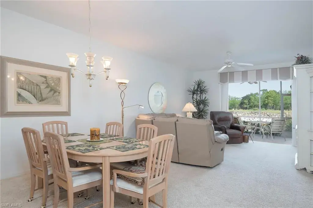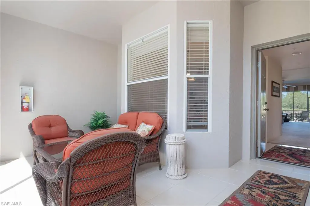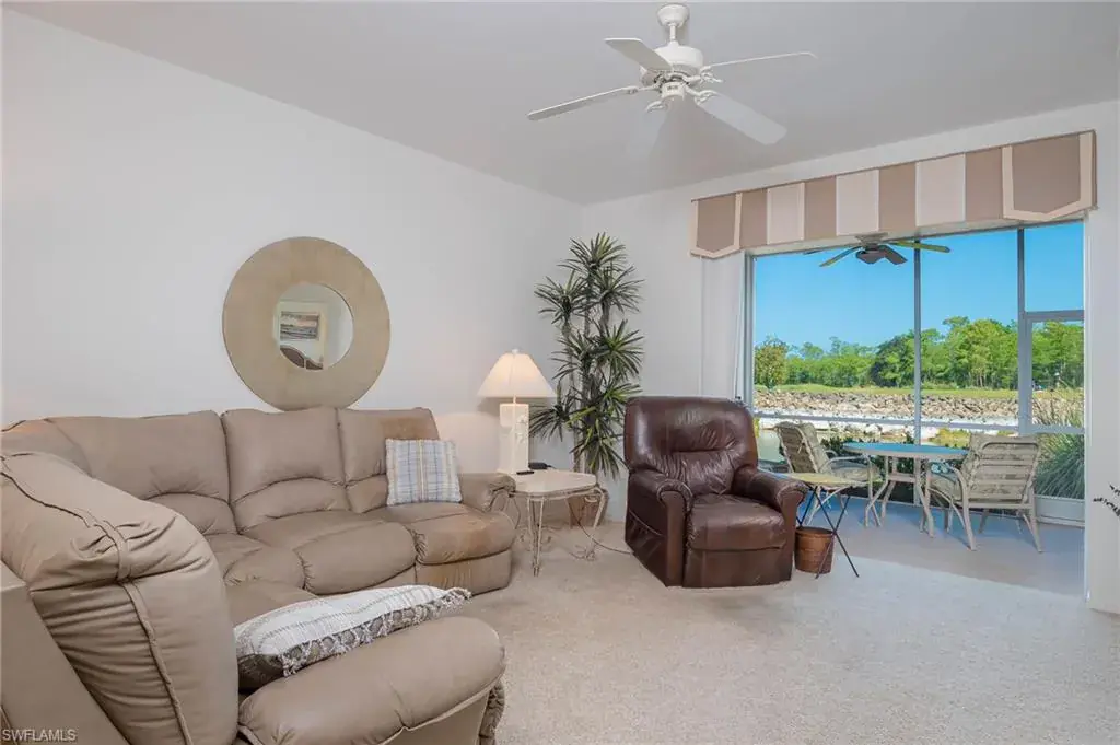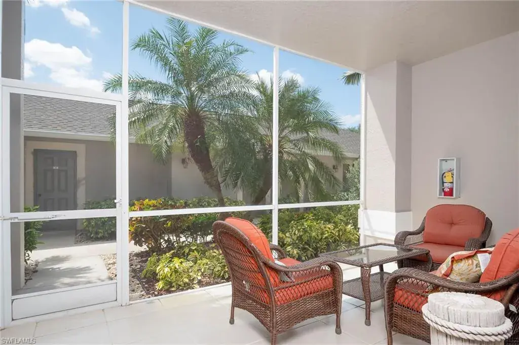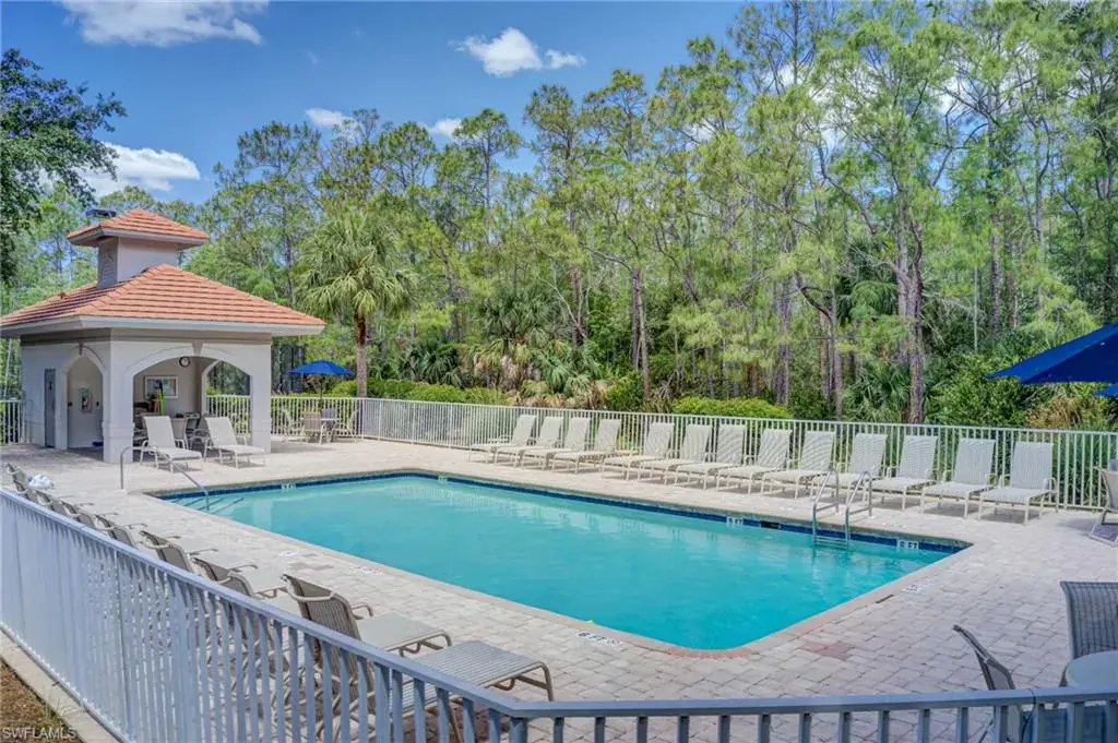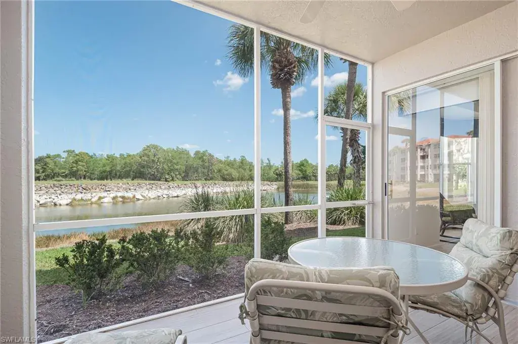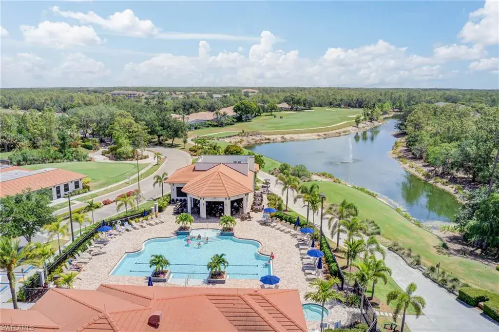The primary bedroom is spacious and overlooks the water and golf course. The 2nd full bedroom and bathroom are oversized and can easily host family and friends The master bath has been updated and has two walk-in closets in the private ensuite. The patio has direct water and golf views with no homes blocking this priceless view. Naples Heritage offers and 18 hole bundled golf course, pro shop, putting green & driving range. The community offers a newly renovated clubhouse, restaurant, poolside cabana & bar. There is a wonderful fitness center with tennis, pickle ball and bocce to enjoy year round living or our winter residents. Naples Heritage is centrally located 3 miles from I-75 going to either Miami or Tampa, the new Great Wolf Lodge 2 miles from the community, Florida Sports Park and within 5 miles to the shoppes, restaurants and entertainment of Naples premier shopping destination 5th Avenue. Seed 2 Table is rebuilding on Davis Blvd and the new convention center is 4 miles from Naples Heritage. Welcome Home!