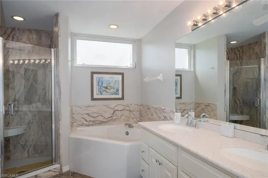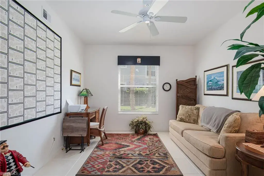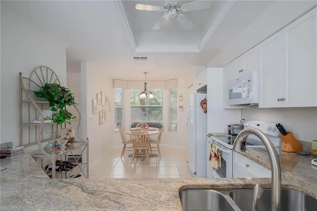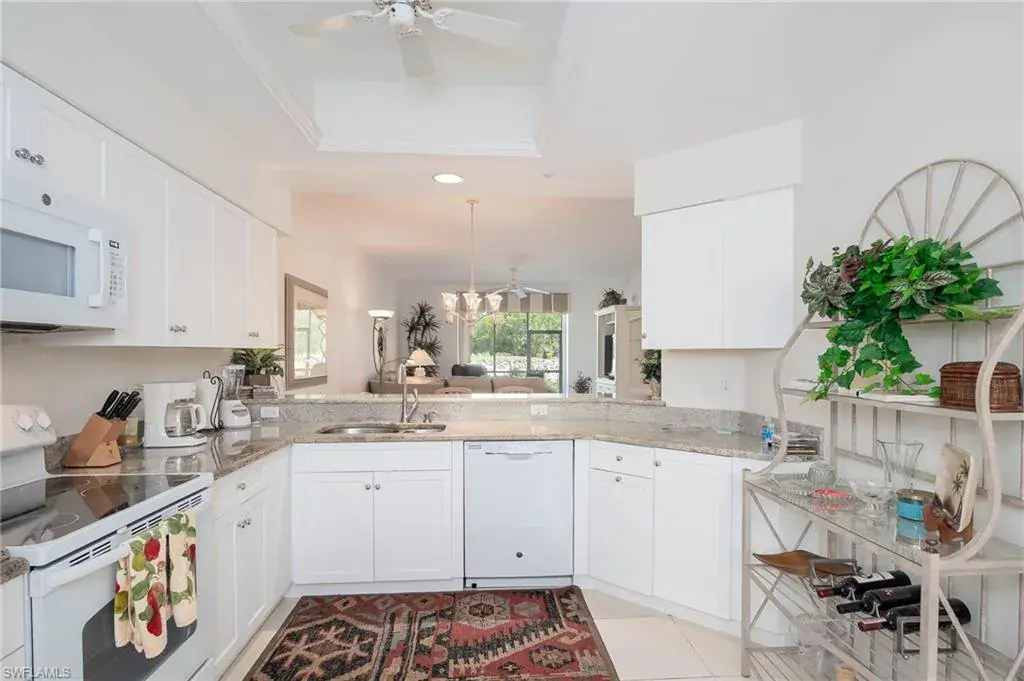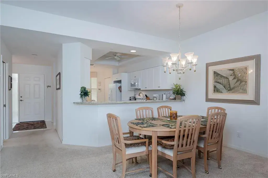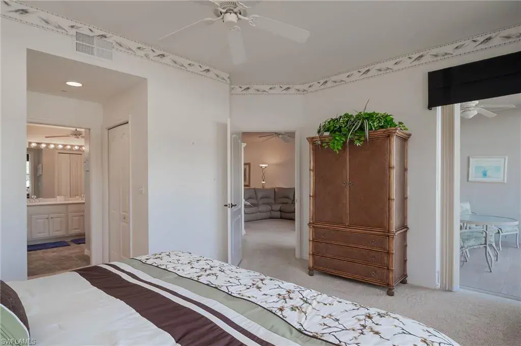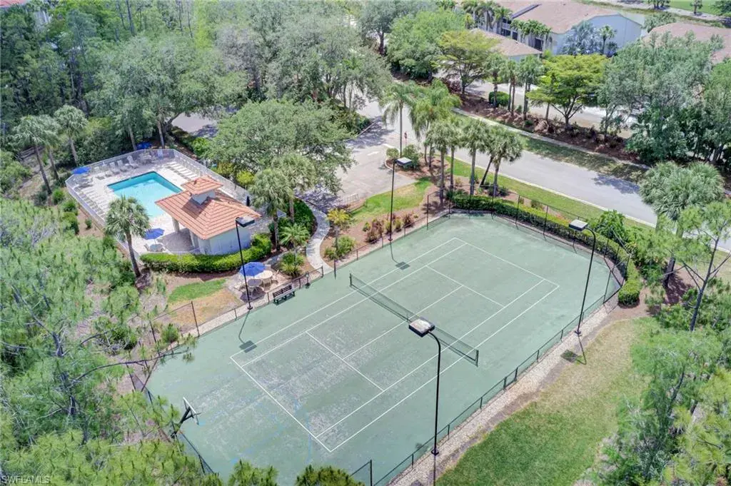 The primary bedroom is spacious and overlooks the water and golf course. The 2nd full bedroom and bathroom are oversized and can easily host family and friends The master bath has been updated and has two walk-in closets in the private ensuite. The patio has direct water and golf views with no homes blocking this priceless view. Naples Heritage offers and 18 hole bundled golf course, pro shop, putting green & driving range. The community offers a newly renovated clubhouse, restaurant, poolside cabana & bar. There is a wonderful fitness center with tennis, pickle ball and bocce to enjoy year round living or our winter residents. Naples Heritage is centrally located 3 miles from I-75 going to either Miami or Tampa, the new Great Wolf Lodge 2 miles from the community, Florida Sports Park and within 5 miles to the shoppes, restaurants and entertainment of Naples premier shopping destination 5th Avenue. Seed 2 Table is rebuilding on Davis Blvd and the new convention center is 4 miles from Naples Heritage. Welcome Home!