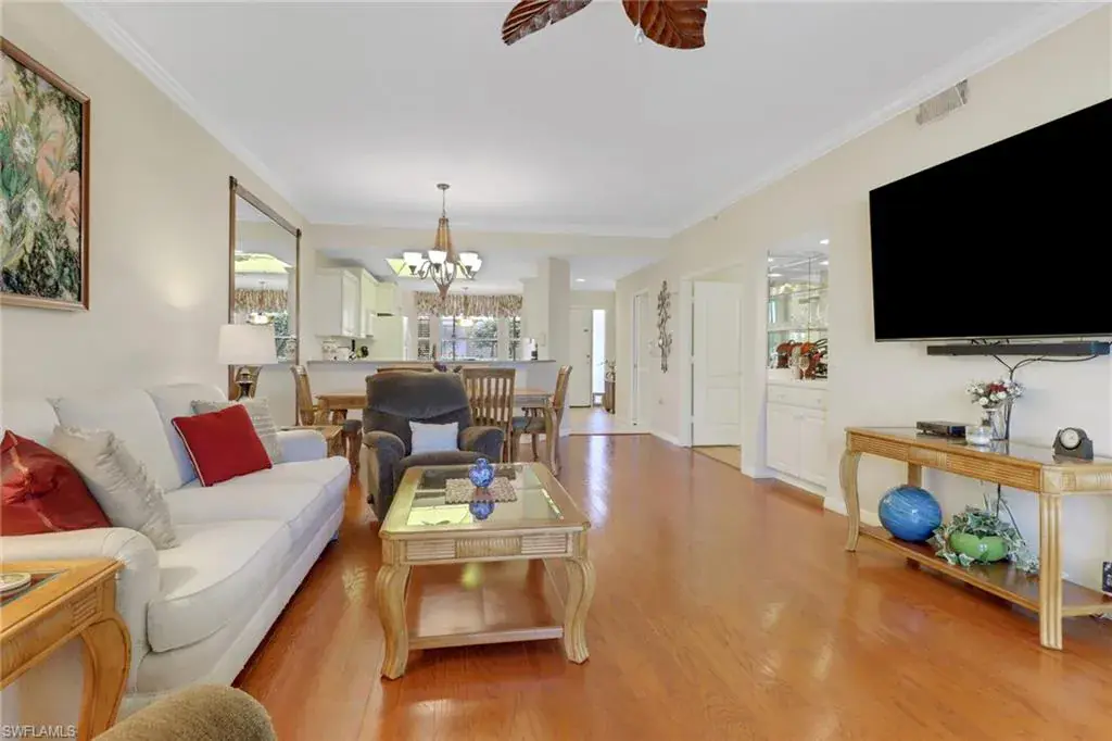 First floor, end unit Abbey (highly coveted!) is light and bright with just under 2000′ square feet. The condo has large, south facing windows, with the back lanai overlooking the fairway of the 9th Hole of Cedar Hammock Golf and Country Club’s award winning golf course. The 2 bedroom + den/2 bath has large front and back lanais for wonderful outdoor living, great storage with 3 walk in closets, two linen closets, plus a one car garage with extra storage. Large, neutral tile on the diagonal greets you in the nicely updated, eat in kitchen with updated cabinets, granite countertops, farmhouse sink, newer appliances and light fixtures. Brand new AC with transferable warranty, and the washer, dryer, hot water heater have also been updated. Freshly painted bedrooms and den have newly installed, gorgeous, light, wood laminate floors. The grand master bath has large walk in shower, separate soaking tub, the toilet in a private water closet, a linen closet and dual sinks for plenty of personal space, has also been freshly painted. Watch breathtaking sunsets from the comfort of your lanai while also viewing deer and birds wandering by. This unit is being offered turnkey so just pack your suitcase and golf clubs to unwind in your own slice of Naple’s paradise. Cedar Hammock is a bundled golf community, 6,680-yard Par 72 Course, that was designed by two legendary golf course architects, Jed Azinger and Gordon Lewis. The redesigned Community Center features both indoor and outdoor dining options, a new resort pool, 2 story fitness center with professional trainer, pro shop, a competitive tennis program on updated courts, bocce courts with popular community programs. Close to both downtown Naples and Marco Island, great restaurants and shopping, all next to gorgeous white sand beaches.